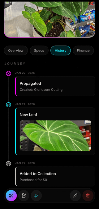 I'm coding a feature that links plant cuttings to their 'Mother Plant' visually (like family tree software).