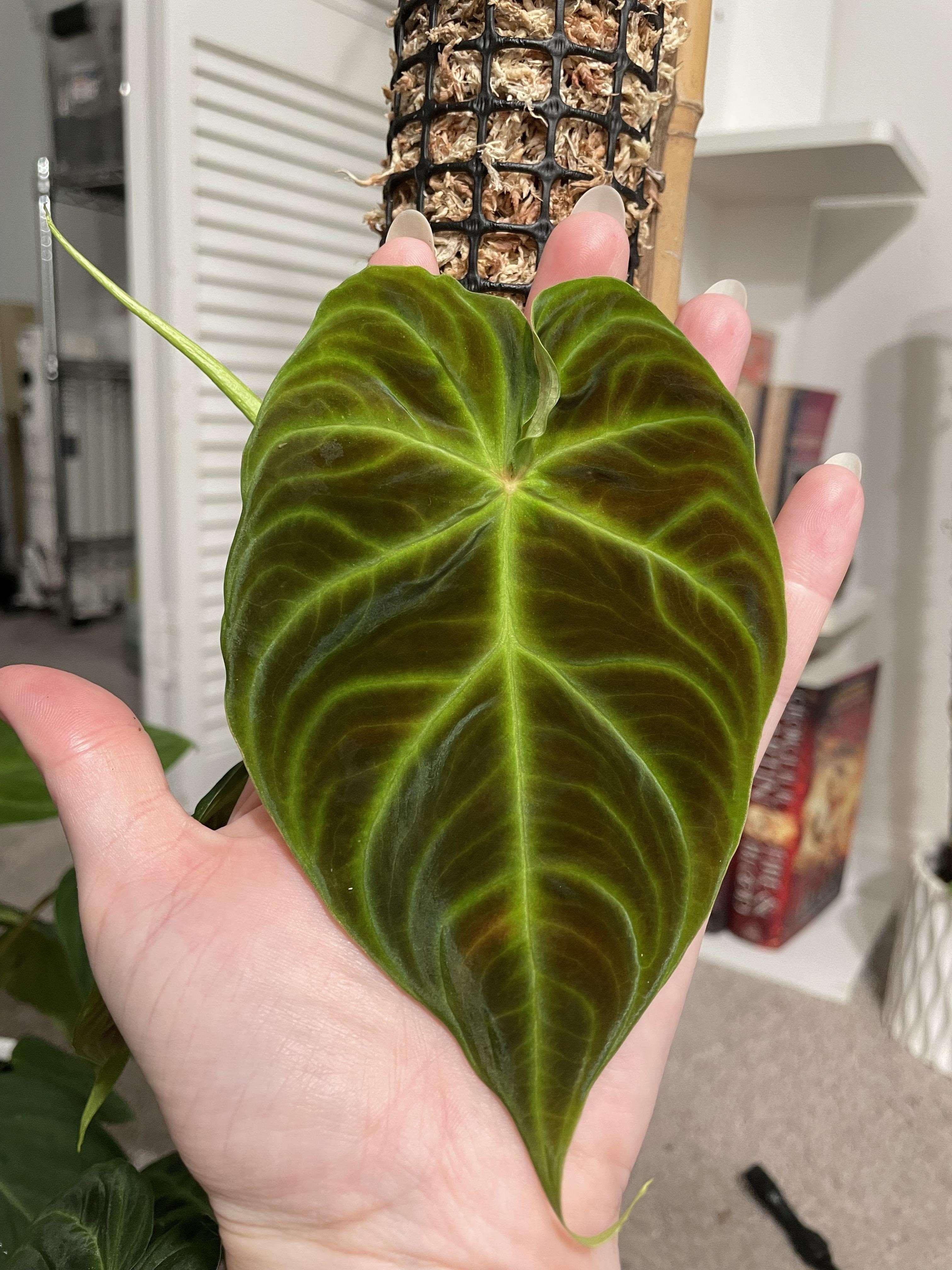 I just got one and it’s definitely one of my favs. That black red green velvety goodness. It’s currently throwing a fit at my low humidity (in n fl where it’s ridiculously cold right now). I won’t do moss poles and I’m toying with the idea of letting mine trail when she’s a bit bigger. I have it on a wood stake now but just saw a video on YT where someone phased out moss poles and let theirs trail and it’s gorgeous