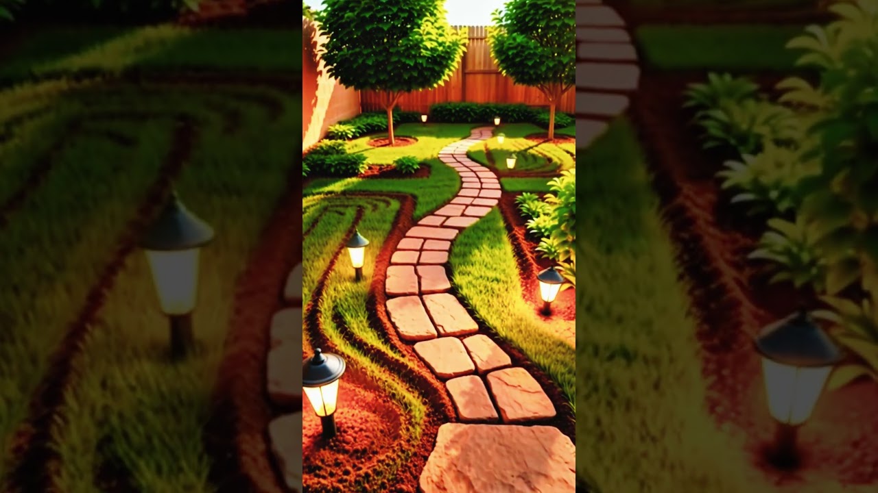 Watch this satisfying timelapse as a bare backyard transforms into a beautiful garden with green grass, trees, walkways, and warm lighting.