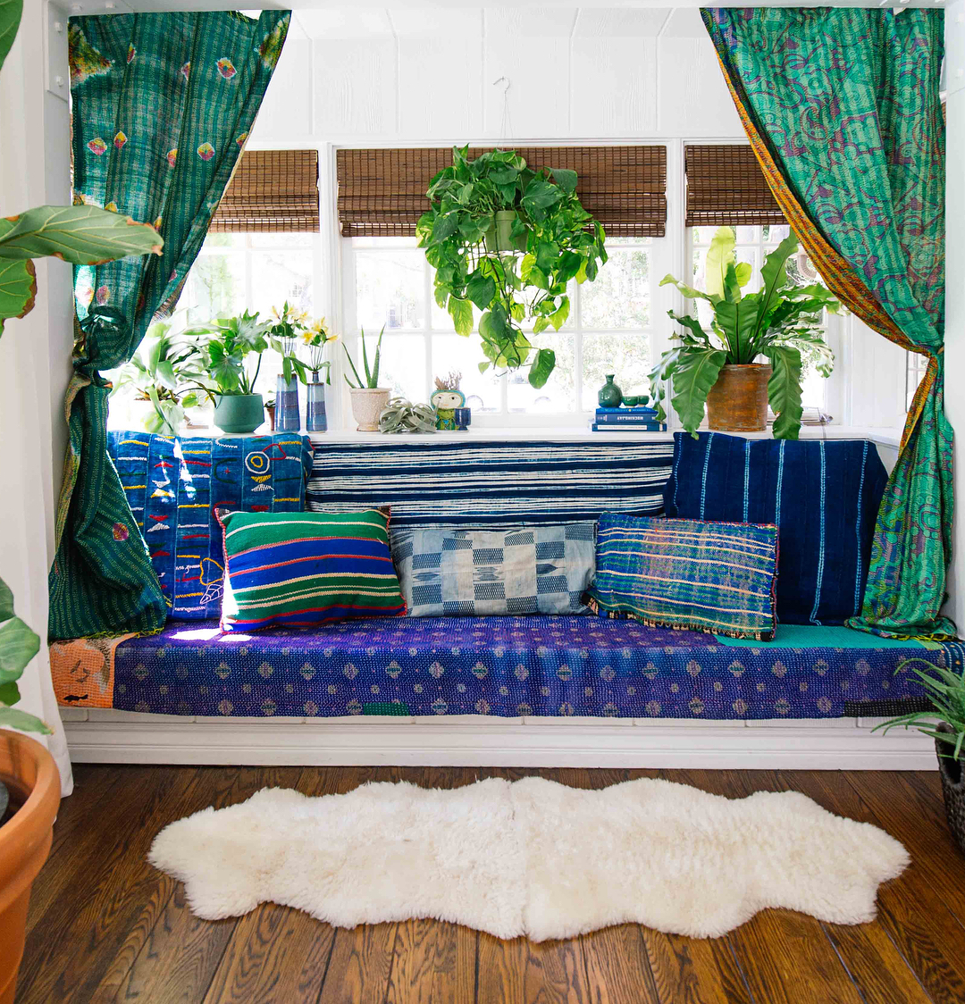 Swipe! 👉🏾 There is a deep connection between home decor and wellbeing! Our new book is all about making your space work to support you, your family and your dreams. We wanna help you bring good vibes home so we dig in to how different design elements make you feel. In the home of @erin_lucas, we used textiles in warm and cool tones to transform this nook in her home. Which one speaks to you? Warm or cool??👉🏾 Understanding how different colors affect you and your moods can (and should!) inform your design designs at home. #thenewbohohandbook now available for preorder and coming out on Tuesday!! photos by @dabito