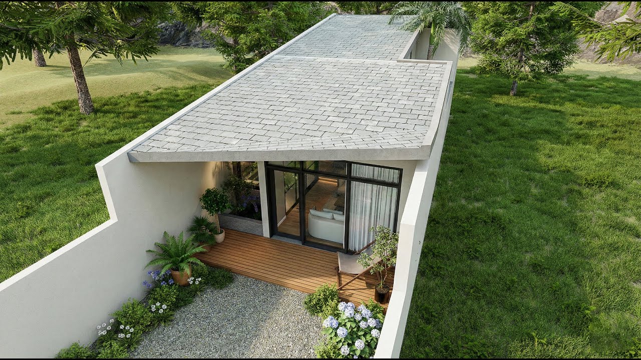 If you’re looking for a clever small house design for a narrow 20ft (6m) lot, this layout changes everything! This modern 2-bedroom home feels incredibly spacious thanks to a smart open-concept design and a stunning indoor garden that brings in tons of natural light.