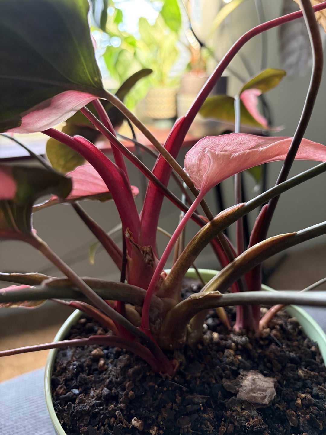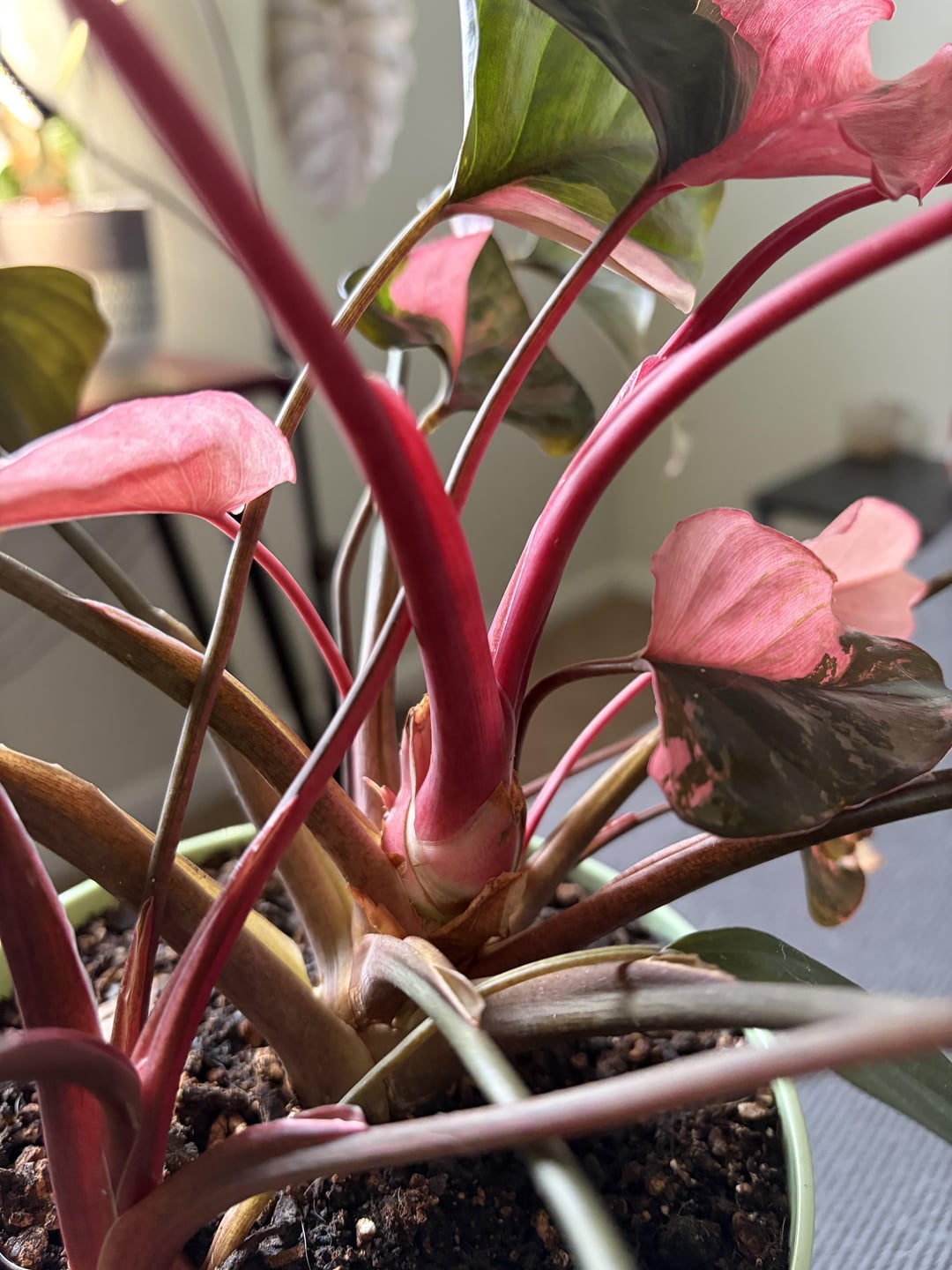I’ve had this pink diamond since August and when I got it the new leaf was all pink (was not out when I bought it) and it has only put out all pink leaves since then. It has like three little pups around it and two of them are doing fine but one of them is coming out all pink now too. I have trimmed off the all pink leaves once they’re dead. What should I do to promote green returning? The pink is pretty and all but i need this baby to thrive