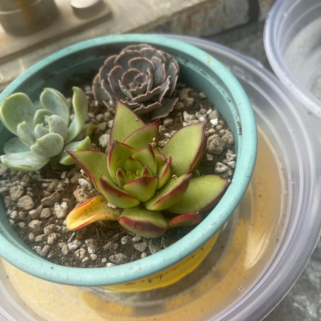 Also make sure that the echeverias arent below the top of the rim like in the picture it can cause moisture to start getting trapped near the walls of the pot where the leaves are which can potentially lead to rot