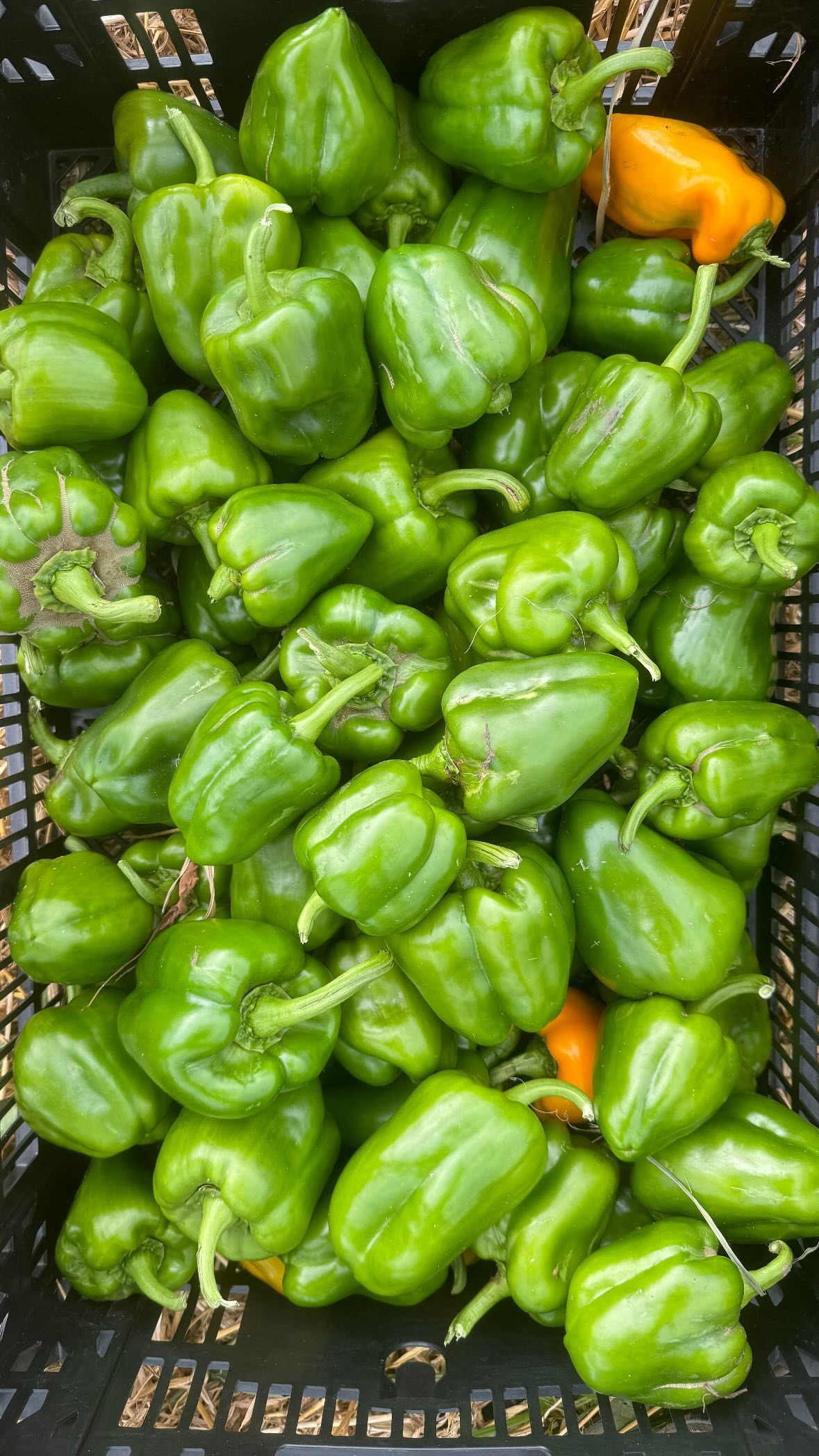 Featured image: A tray of green bell peppers also harvested during Keep Growind Detroit’s weekly volunteer hours. (Photo by Ethan Bakuli)