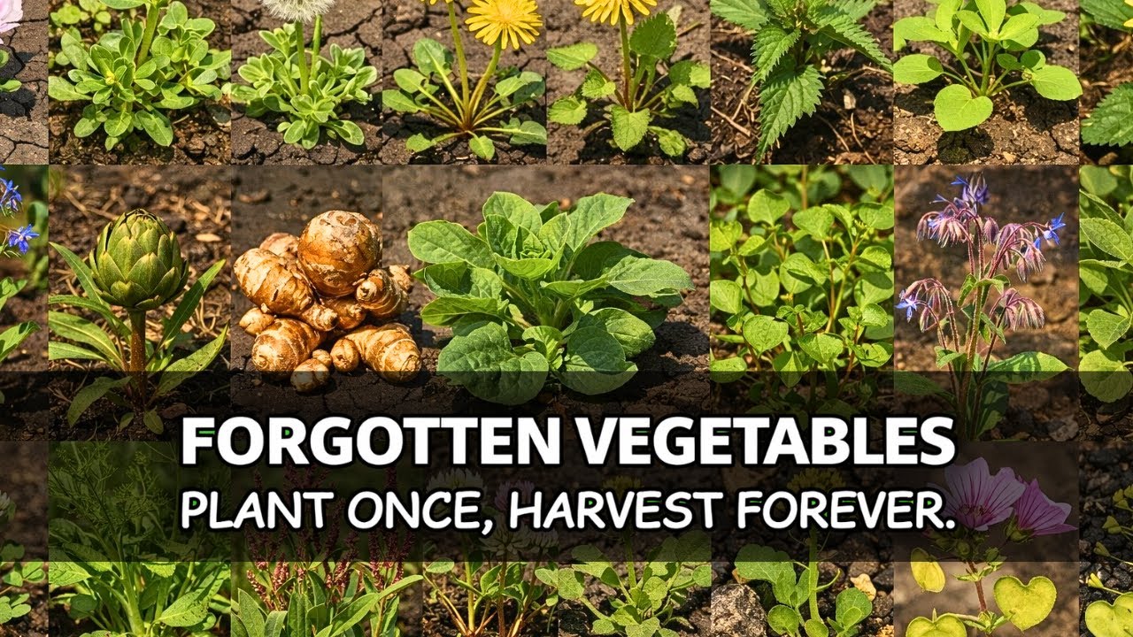 Forgotten vegetables that grow like weeds and feed you with almost zero effort. This video covers 20 resilient, self-seeding, drought-tolerant edible plants our ancestors relied on for food security. Learn about purslane, lamb’s quarters, dandelion, nettle, Jerusalem artichoke, amaranth, miner’s lettuce, chickweed, clover, wild mustard, and more. Perfect for lazy gardening, food independence, survival gardening, and growing food in poor soil with minimal water. If you want low-maintenance vegetables, edible weeds, perennial crops, and plants that thrive on neglect, this is your ultimate guide to growing more food with less work.