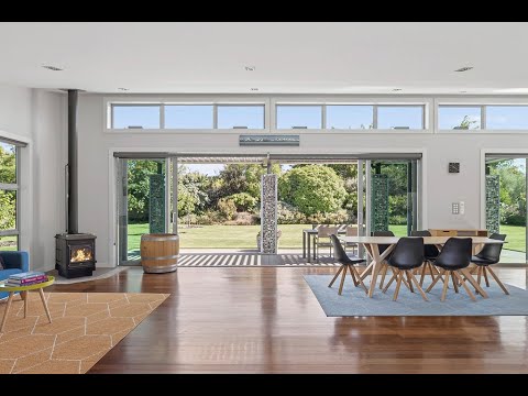 Solid timber flooring and high-stud ceilings enhance the sense of warmth and space throughout. The eastern master suite is a private retreat, complete with walk-in wardrobe, ensuite and direct access to a sun-soaked patio. A second bedroom to the west also opens outdoors and is supported by a beautifully appointed bathroom with designer bath and separate shower. An adjacent study provides flexibility to become a third bedroom if desired. Comfort is assured year-round with a wood burner, two gas heaters and under-tile heating in both bathrooms.