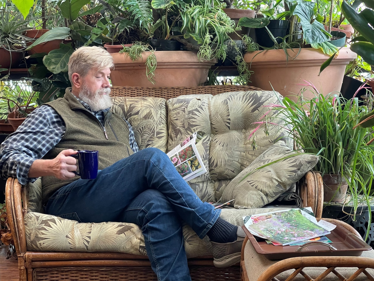 Sourdiffe: I am very lucky to have been able to build a 20- by 30-foot, multilevel conservatory (see photo) as an addition to our cabin in the Berkshire hills. Most of my tropical house plants reside here. However, I do have plants spread throughout the cabin especially the ones I want to keep a close eye on or the ones that are in bloom. My largest plant is a 27-foot white Bird of Paradise, followed closely by a large Foxtail Palm. My smallest plants perhaps are the smallest of my Tillandsias or air plants. These measure about one and a half inches tall. The variety of plants I grow, both fragrant and not so fragrant, include bananas, citrus, succulents, jasmine, passion flowers, Ficus, bonsai and many, many more tropicals.
