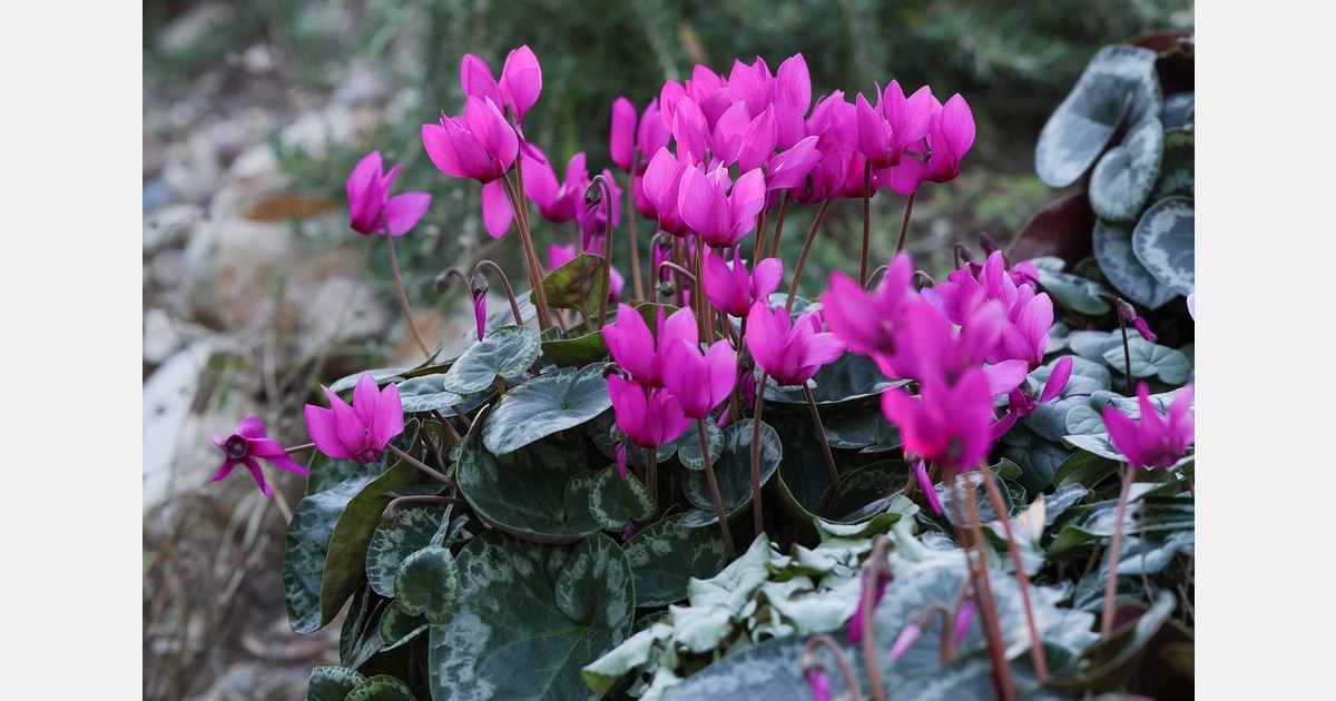 The plant also features a naturally intense and long-lasting fragrance inherited from Cyclamen purpurascens, continuous flowering throughout the year with peak performance in spring and autumn, and a perennial habit with frost resistance down to –10 °C.