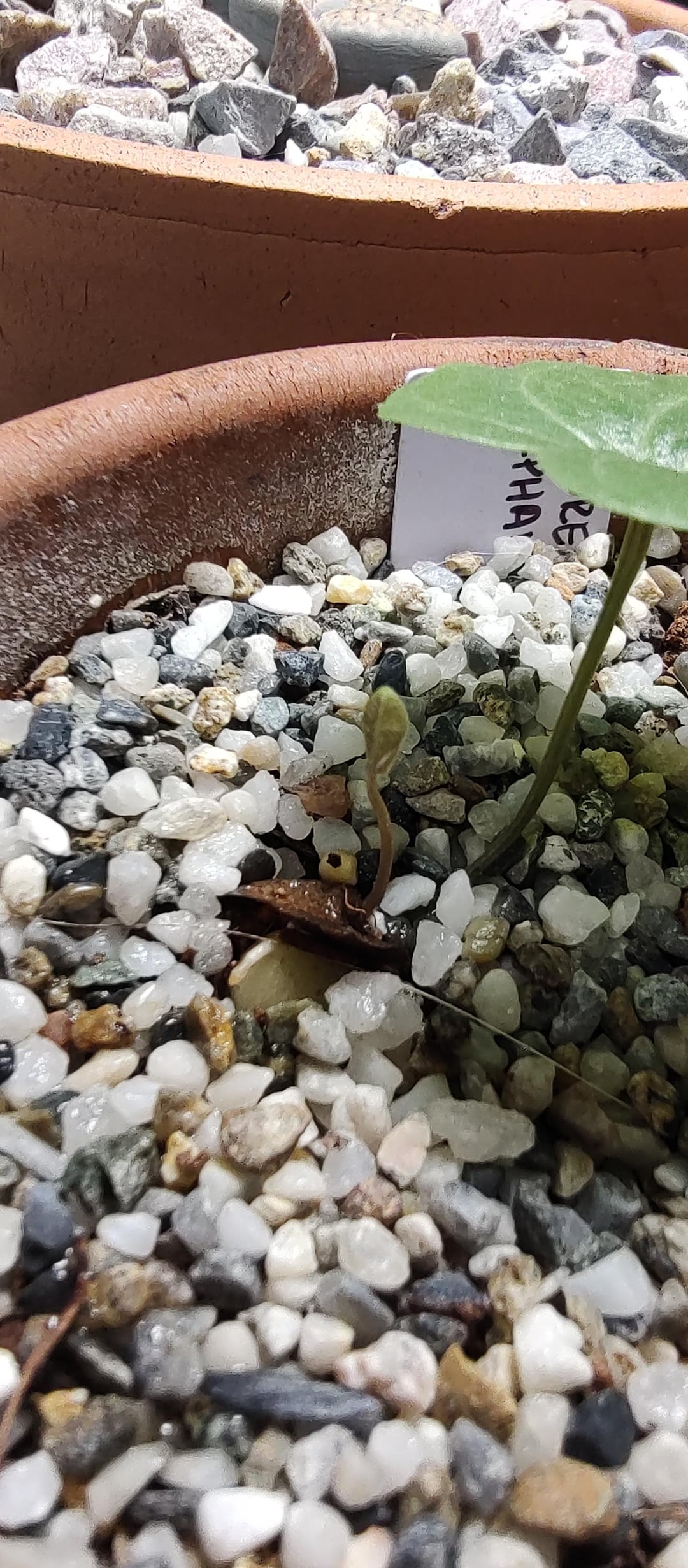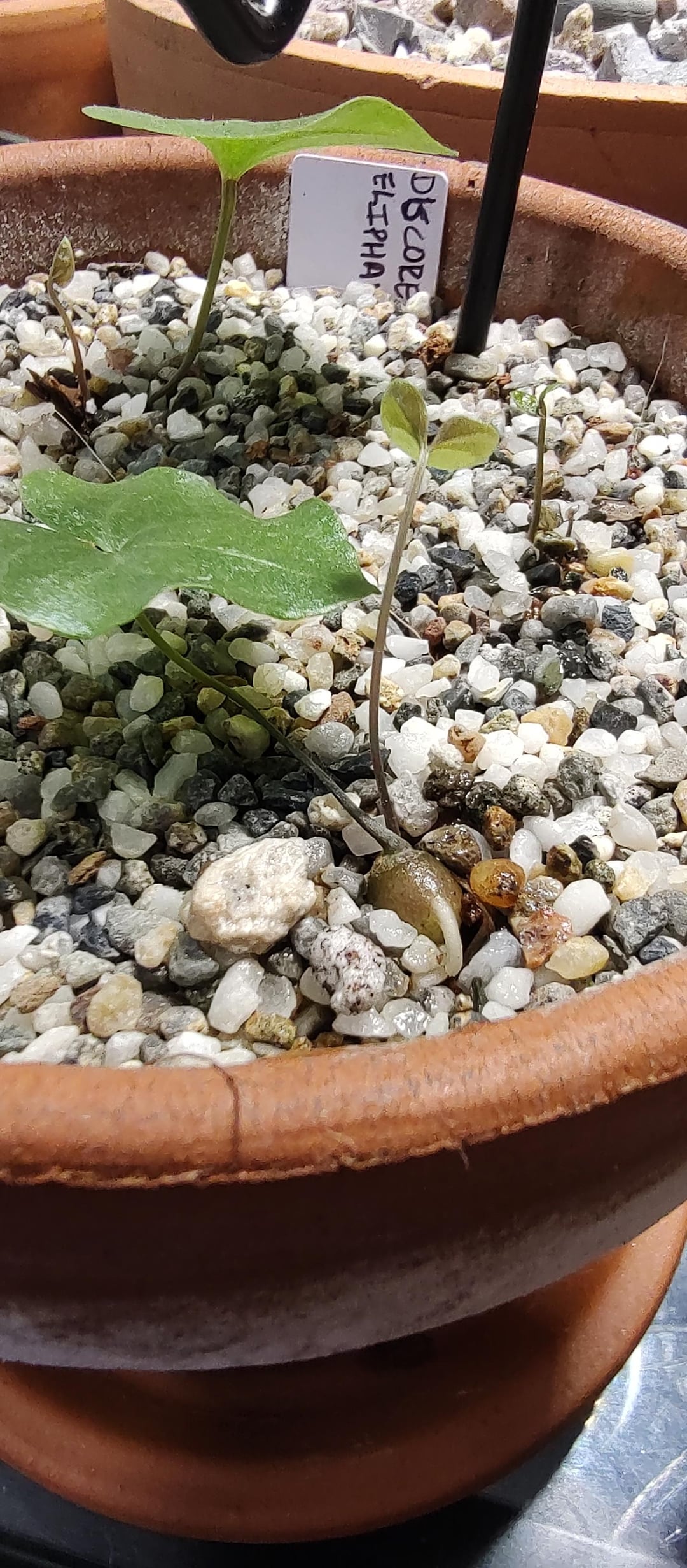 These Discorea elephantipes seedleeds look really happy to me, but both of them seem to be on their sides so to speak. Should I bury them more or let them do their thing?