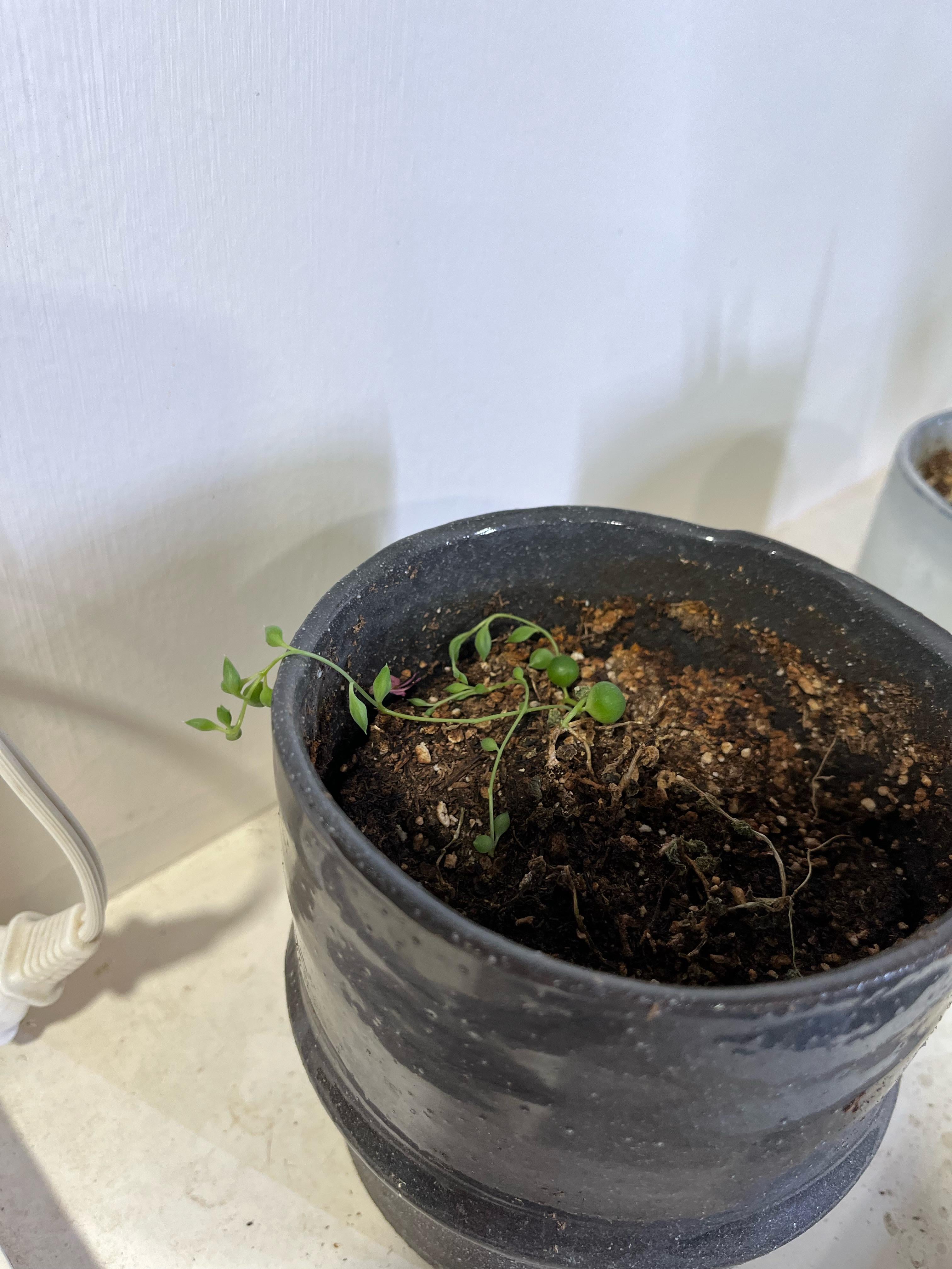I was gifted (cursed with?) this string of pearls. The previous owner was.. not great with plants, to say the least, and now it’s with me for hospice. The green living bits have been green for a while, and the whole plant is in a sort of death-stasis. Obviously the first thing I’m doing is moving them to a much much shallower pot and giving them more light and reduced water, but any other thoughts? Has anyone revived a string of pearls from this condition or should I just prepare my eulogy now?