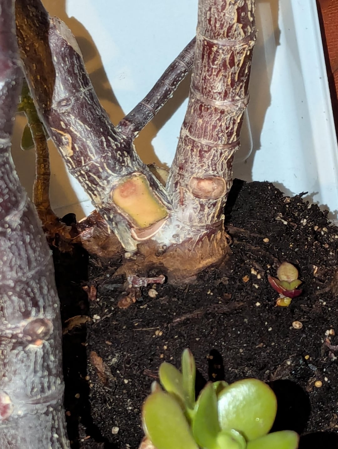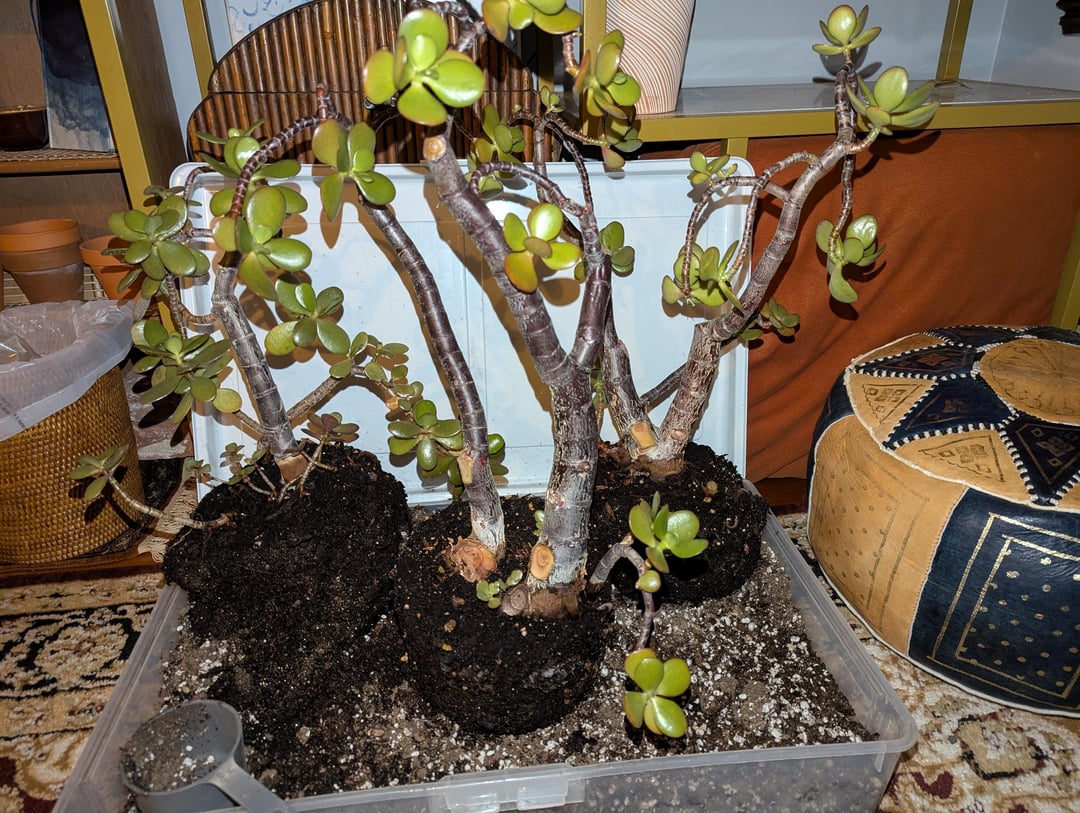Acquired three old Rotty jades. Cut off some rot and pulled out dead trunks, but not sure if the brown in the trunk is more rot or normal. Should I abandon the roots and behead them all?