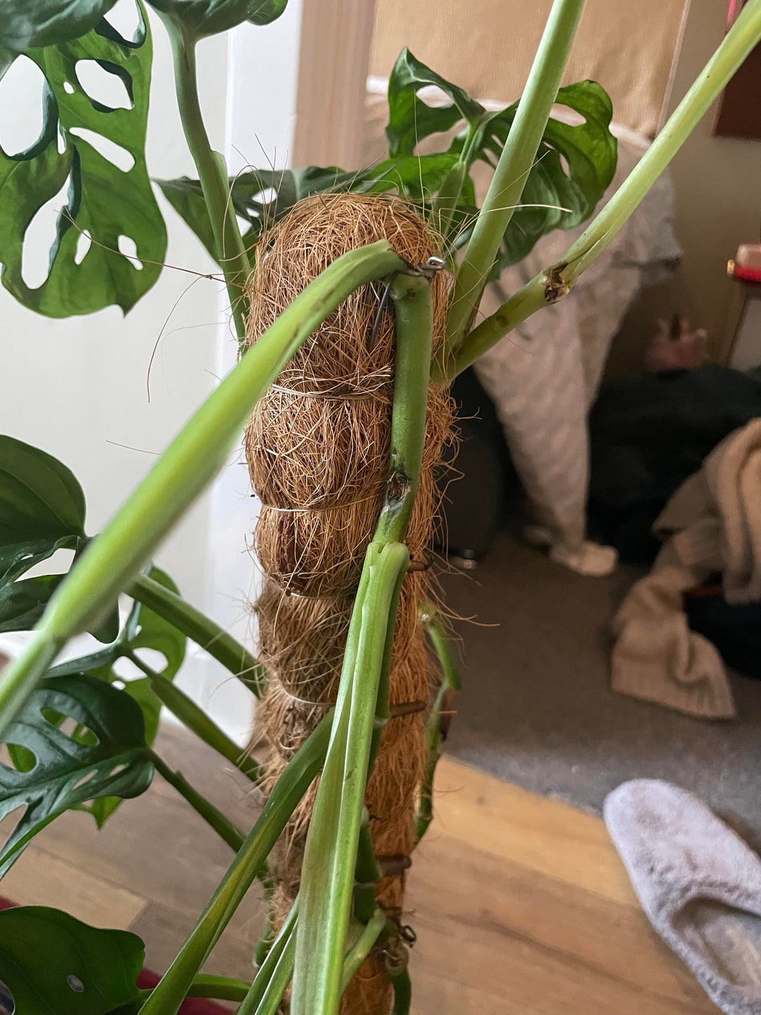 The leaves are all shrivelled and brown in places, the stems seem weak and falling down. I tried to tie it up against the poll.