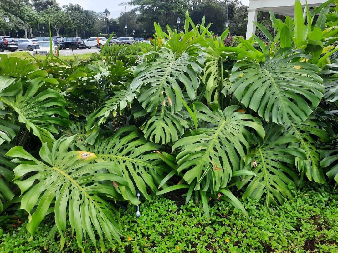 Found these monsteras being used as bush decorations outside a building. I live in South East Asia where it is always hot and humid and I notice these huge monsteras are able to grow in direct sunlight and open air. Any plant experts can explain why these specific monsteras tolerate the sun so well ?