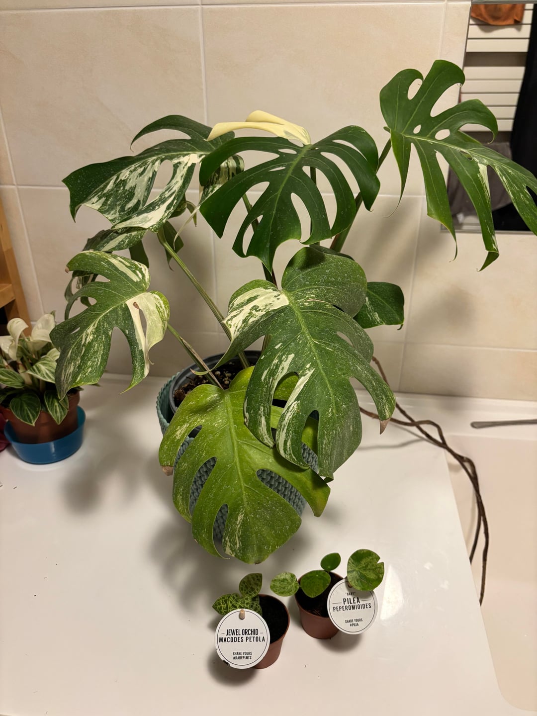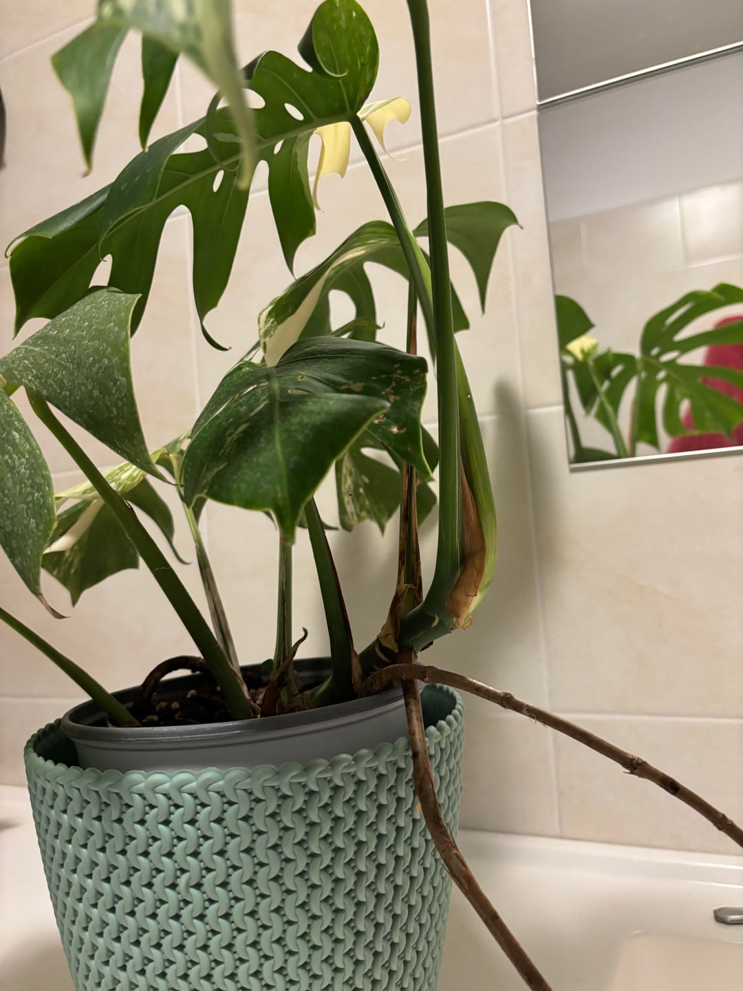 She has two long aerial roots that I am debating cutting (please feel free to weigh in!)