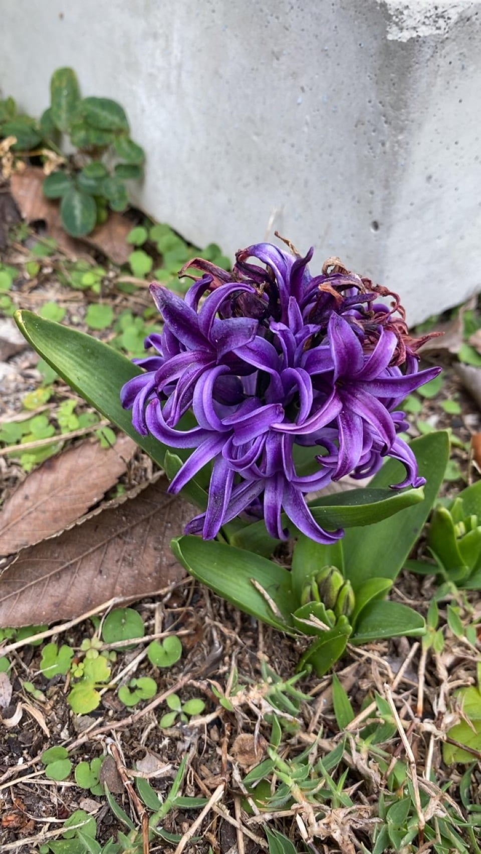 Planted last years Easter hyacinth and just noticed it’s sprouted and bloomed again within the last two months, nice little “winter” surprise! 🪻💜