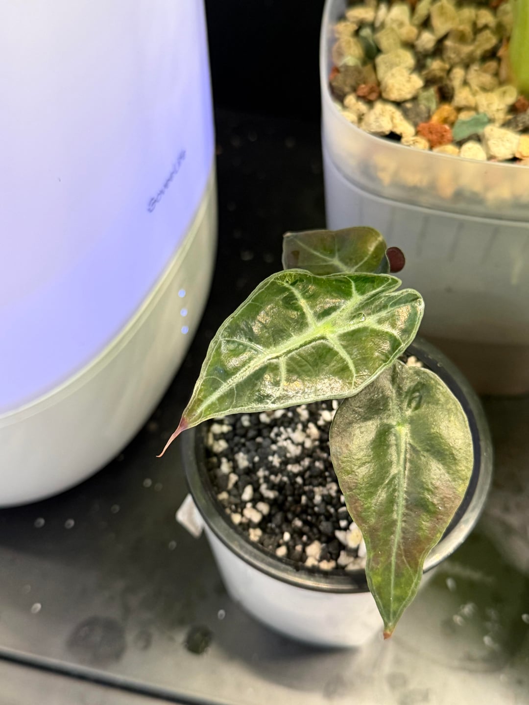These are alocasia polly’s from the same mother plant by Acceptable-Wasabi633 alocasia 2 Comments trsfl83 1 day ago No, it is the leaf dying off. As the plant reabsorbs the nutrients in it, the leaves will typically go purple or red before turning yellow/brown and drying up. bathshark 1 day ago that’s a dry, dead leaf