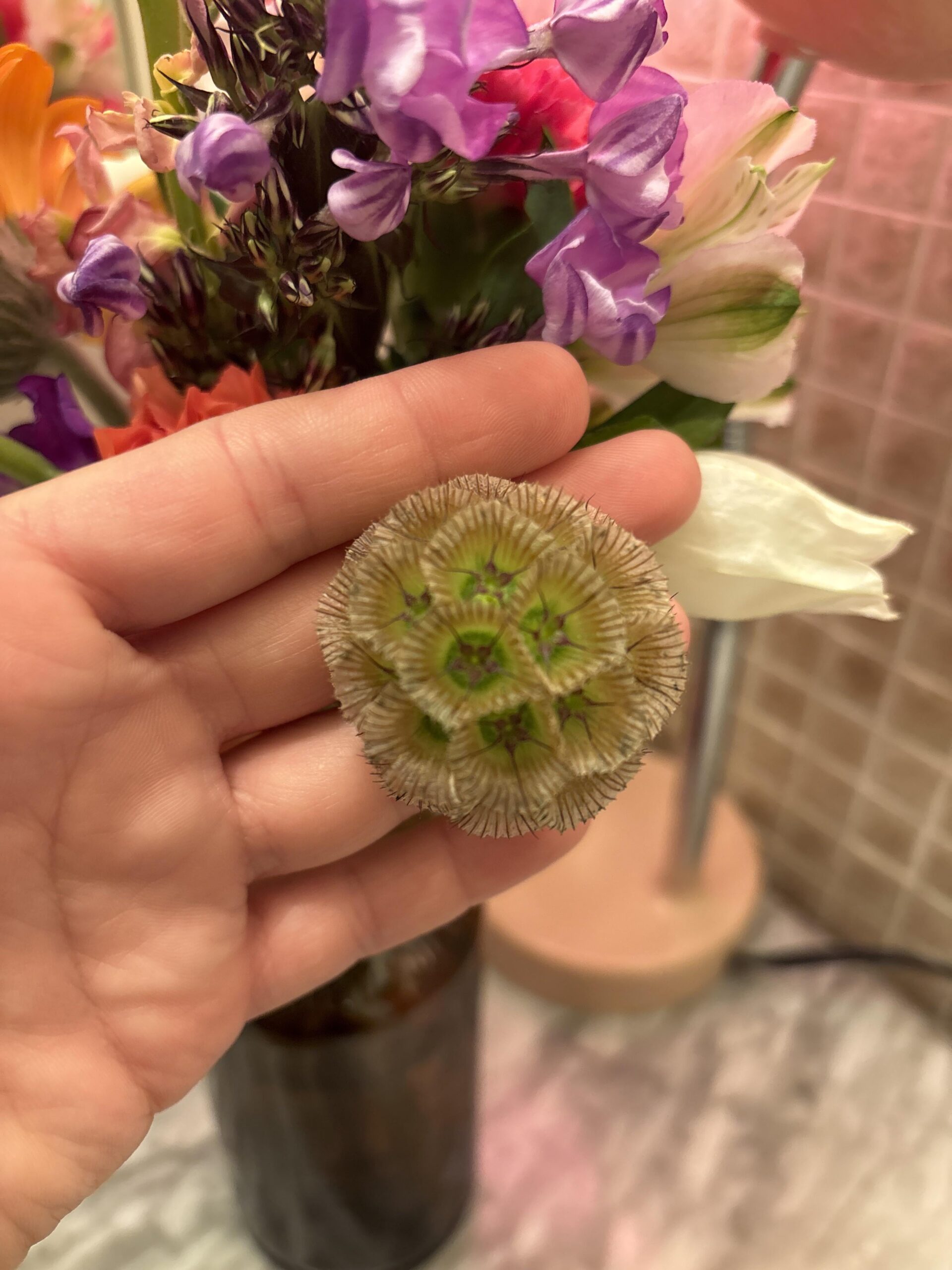 Does anyone know this flower? It’s hard and a little woody, thin stem. Got it in a trader joes bouquet! by kkayla6 plants IdentificationWhat's this plant 1 Comment Decapod73 5 days ago *Scabiosa stellata* ‘paper moon’, aka paper moon Scabiosa