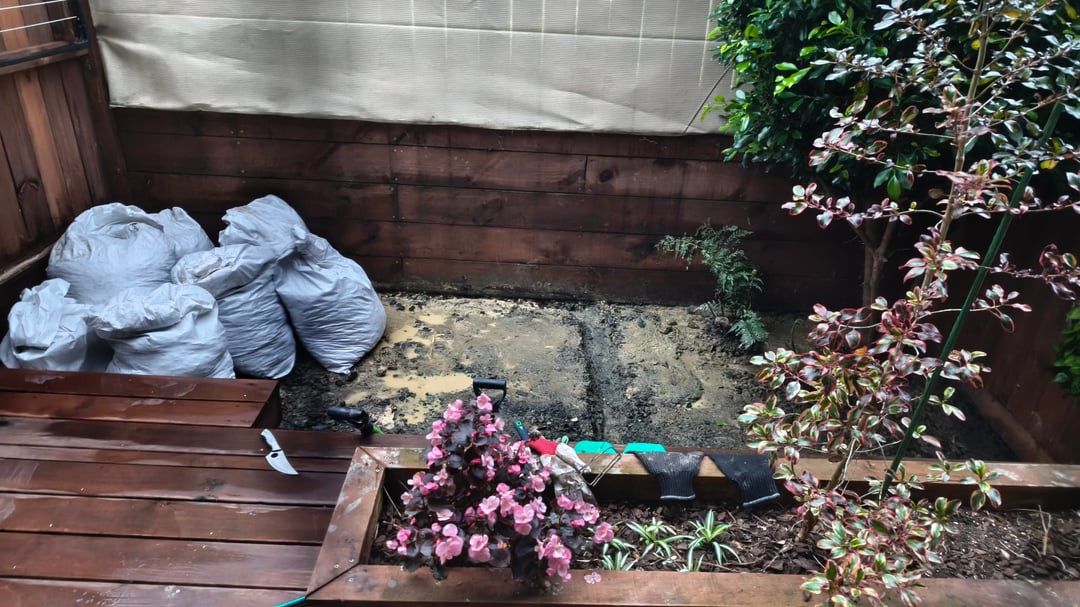 Hey we live in a new build town house in Auckland, New Zealand for last 2 years. The retaining wall in the garden area started seeping water and has caused a lot of clay buildup under the bark. Yes it's a dig out build to level the land hence the soil behind the wall is 1 meter higher and neighbours have a large grass lawn. I'm planning on paving the area with tile and gravel or similar, however would like to address the clay/seeping of water. I dug a temporary trench to move the water to the private storm water drain and protect my neighbour adjacent on the slope. It kind of smells unpleasant too, and we had a fly infestation (1000s). I've removed all the rotting bark and killed all the flies. It still smells though – I think my neighbours are cooks and drain oil into the storm water drain ( will give Auckland council a call).Any hack arounds or does master build cover such things? I can't quite deck off the area as there are main drain/waste water pipes located under.. also where/who could collect about 400kg of bark/clay and rocks :)??