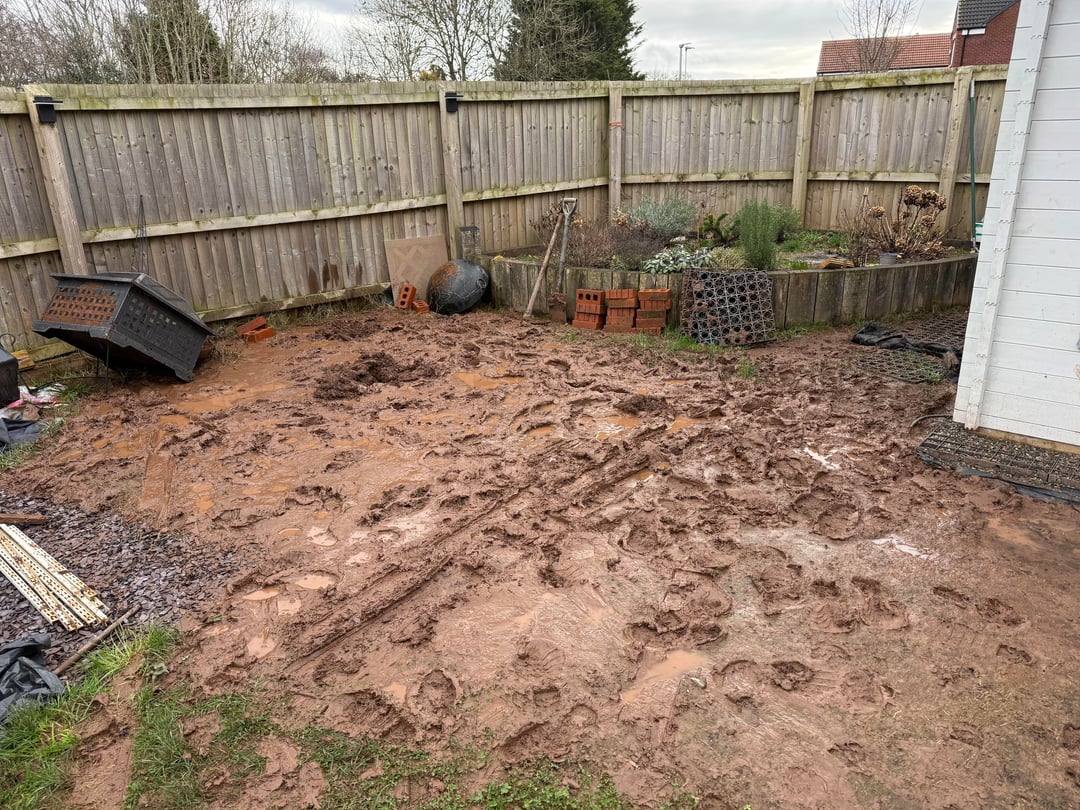 After any kind of advice how to get out garden back. The soil is clay and we are at the bottom of a development so obviously the water comes down towards us but this is ridiculous, it is like a bog out there.