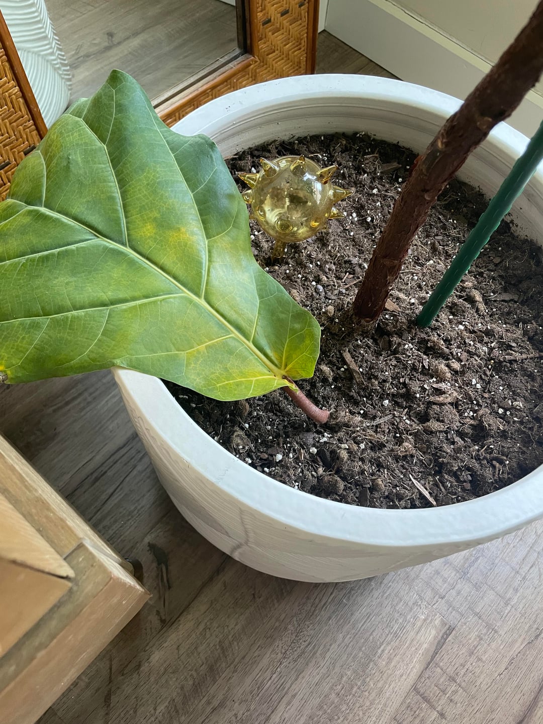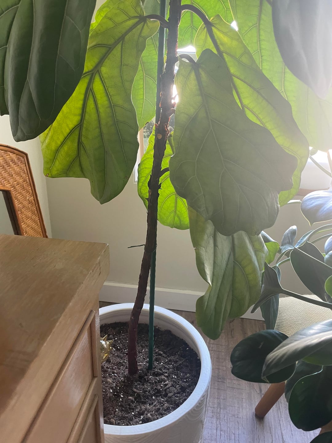 Hi all! Looking for some advice on my fiddle leaf fig. Iβve had it for about 4 years and it just put out a new sprout at the top, which seems healthy. However, the bottom leaves have been slowly falling off and some are turning yellow. Itβs been in the same spot with the same light for years. I probably err on the dry side with watering, and I fertilized about a week ago.Is this normal aging/life cycle behavior, or does it sound like a watering or even temperature issue? Any insight appreciated! πππ