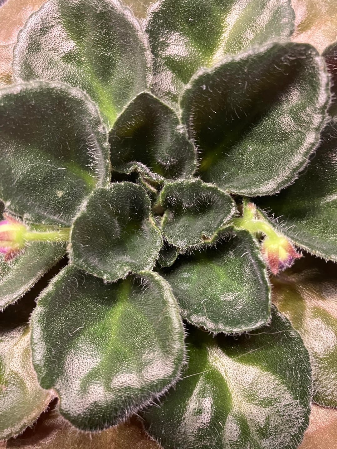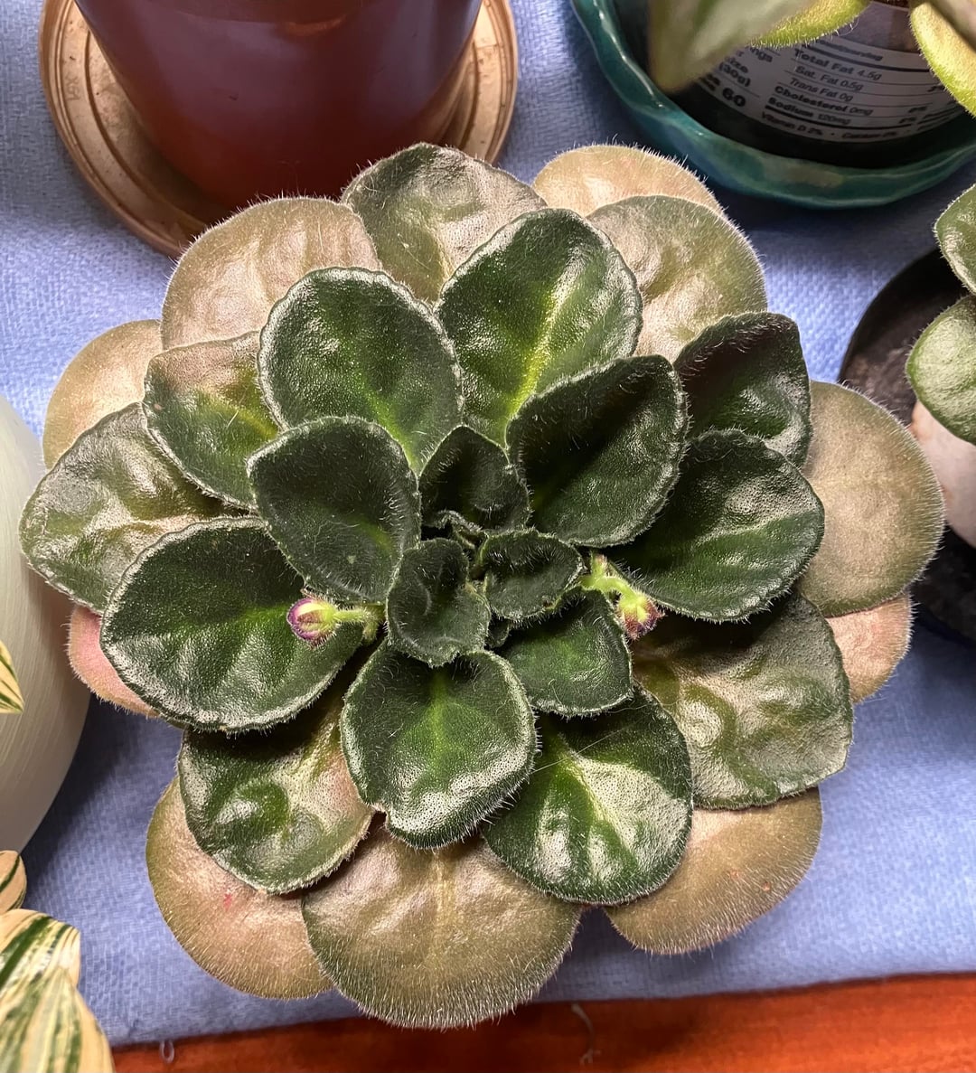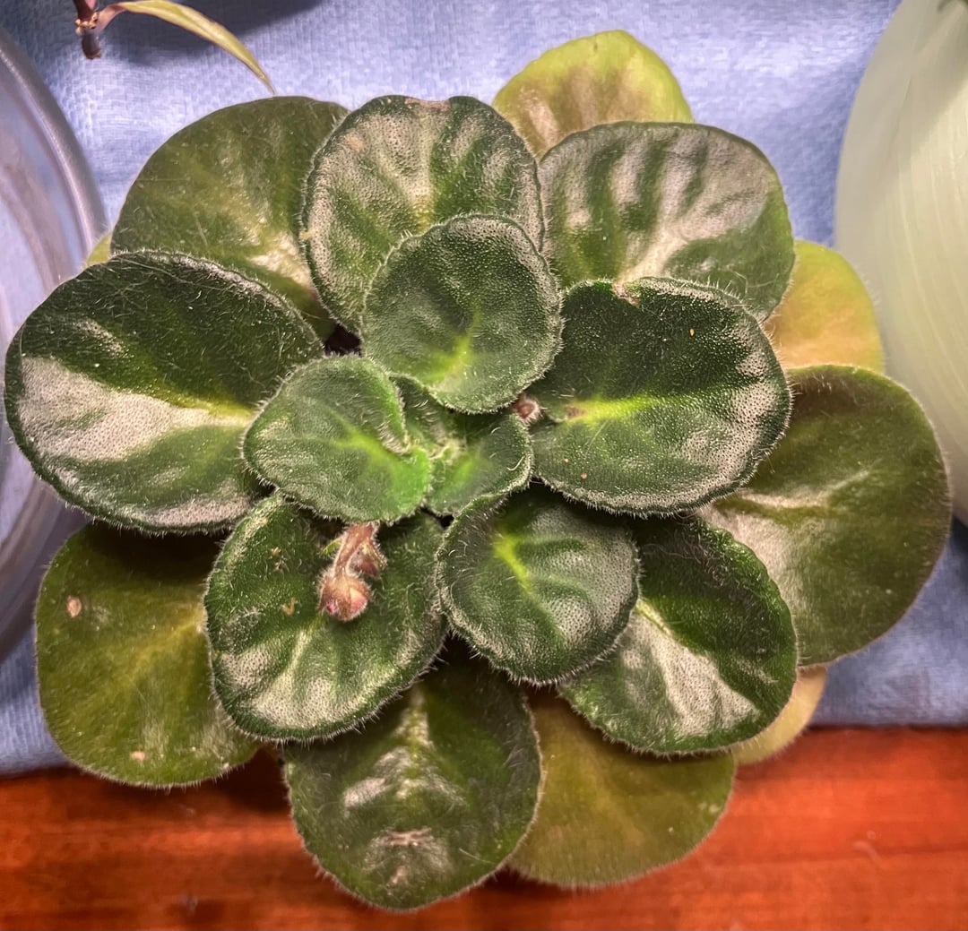 The leaves in the center are very tight. I like the relative flat growth that these violets have, but I realize now that it could be because they’re getting too much light. They are a bit over 2 ft from 15 watt yellow Barrina grow lights.