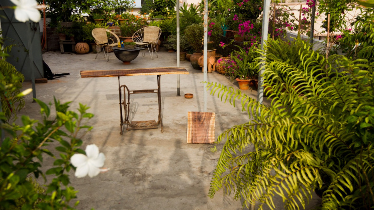 Now he has a rooftop space full of tomatoes, chillies, mint, henna, roses, and frangipanis. Gardening keeps him steady.