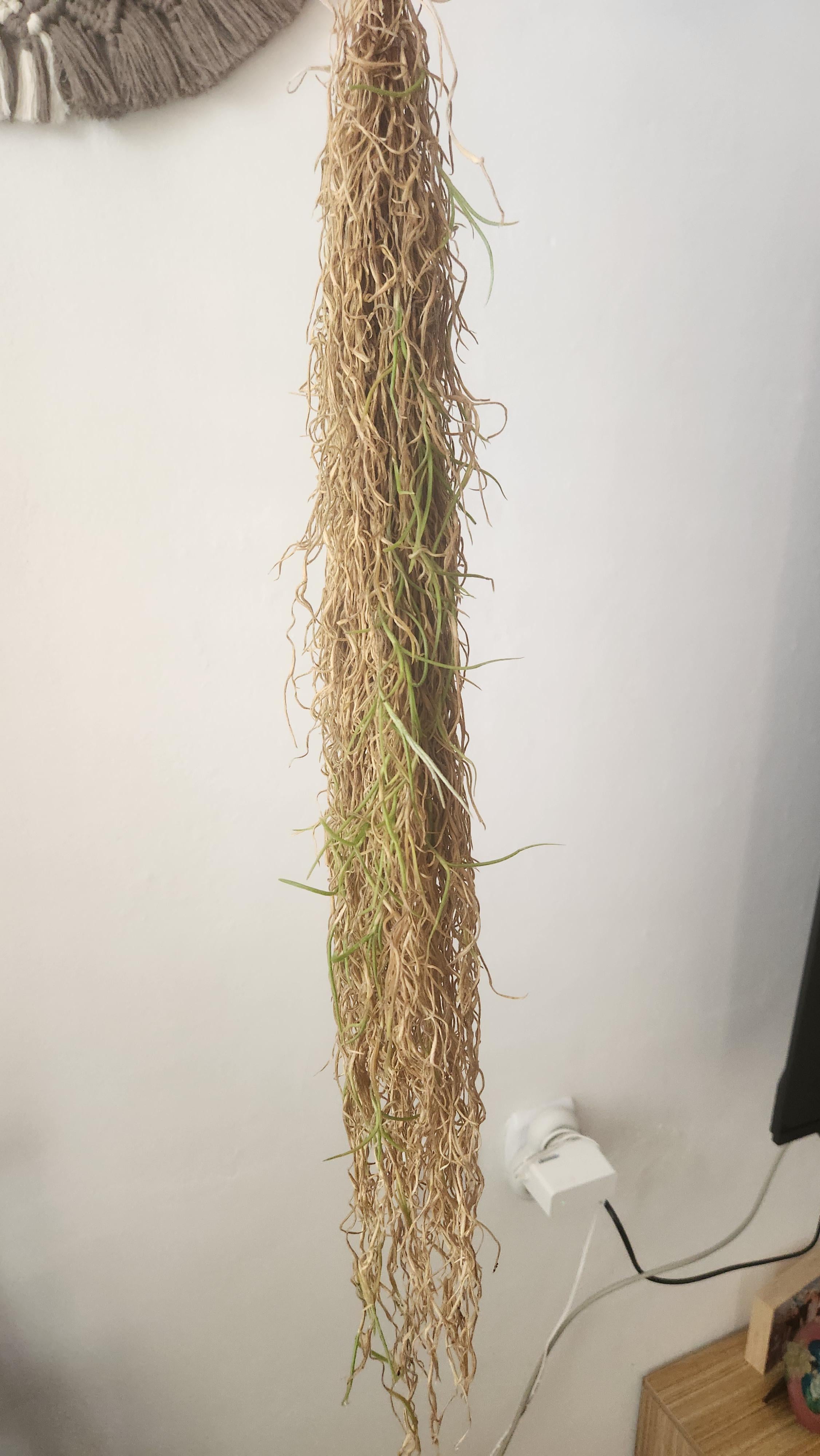 This is the greenest angle, on the other side it's almost entirely brown. I used to mist it every few days (that's what the seller told me to do), and when it got brown I looked up on the internet and started soaking it every week or so. I can't tell if it's recovering or not. The brown parts are still flexible.