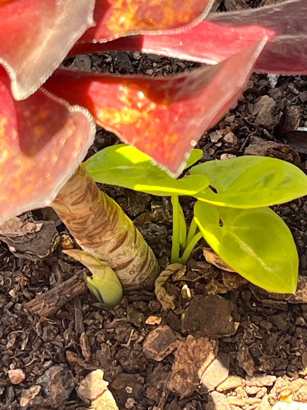 Right next to the stem of the succulent I couldn’t believe it then I see another leaf but a different leaf and it looked like it was coming out of the dirt. Couldn’t see what it was, I just couldn’t believe that these plants were surviving in