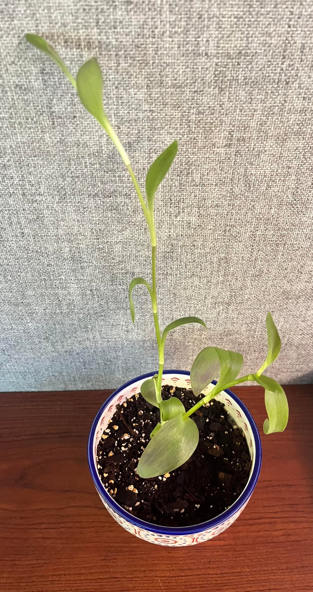 It’s grown quite tall but now is drooping and I don’t know how to care for it, or how it’s supposed to grow.