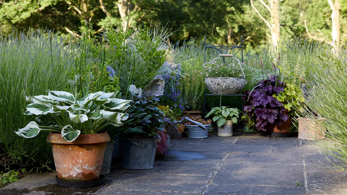 The bestselling author recommends planting perennials in pots which will come back year after year, rather than having to ditch bedding plants at the end of the season and start again.