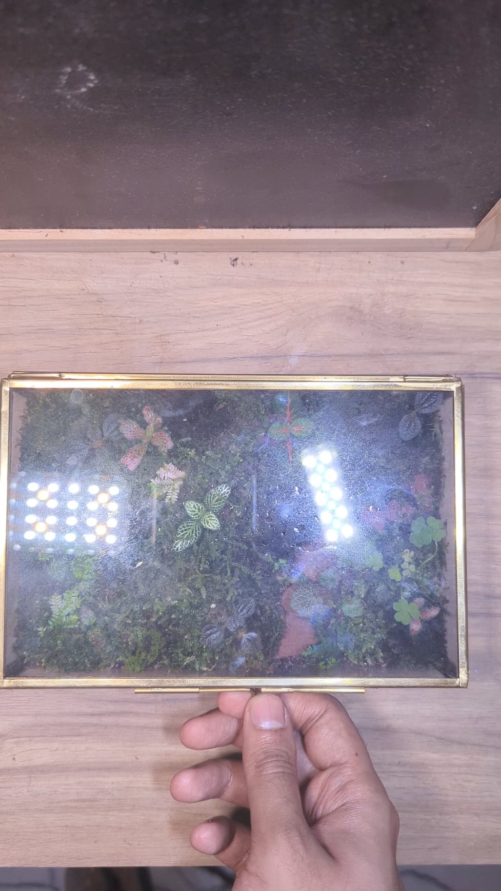 Plants used: salaginella ucinata and erythropus, polka dot plants, fittonias, strawberry begonia, oxalis corniculata, various mosses