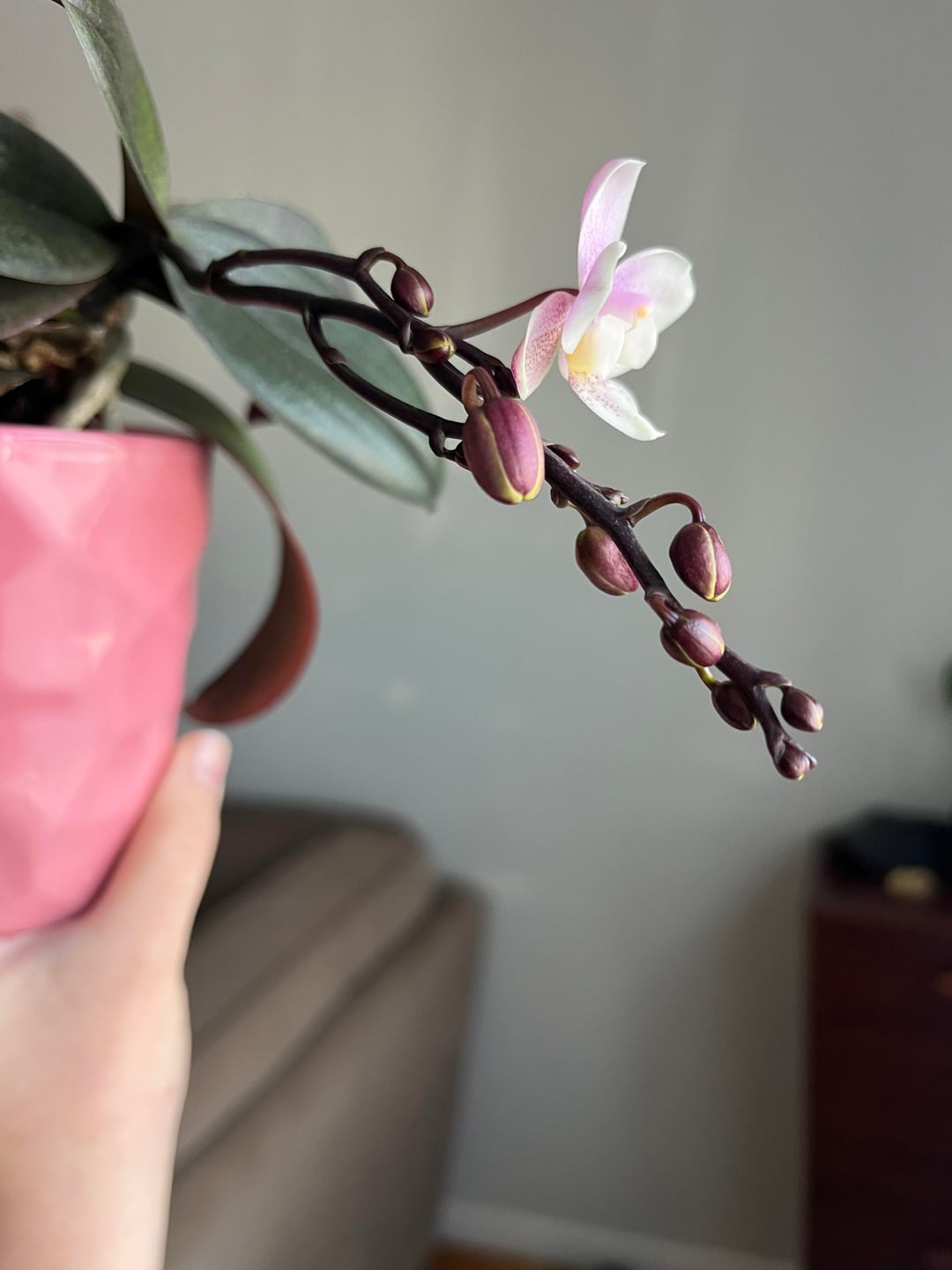 First flower opened on this mini phal rebloom with many more to go! by PetWasp Orchids 3 Comments bettyorchids 2 days ago Beautiful 😍 mariposaskiss 2 days ago So many blooms! Doc_O_ 2 days ago Really beautiful 🥰