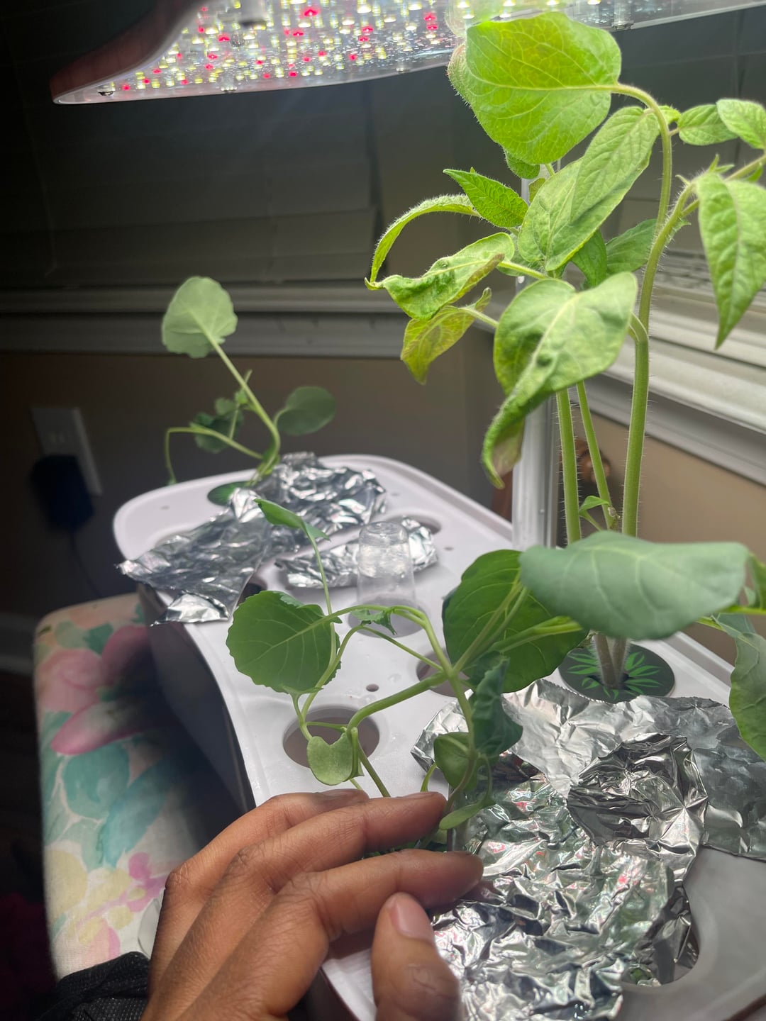 hey !! so my man got my a hydroponic machine and i love it , it’s been going good so far but the leaves are curling up and i can’t get the plants to grow straight ?? also i had to move my cucumber into a different pot ? is that enough soil?? sorry i’m really really a beginner plant mom🥲