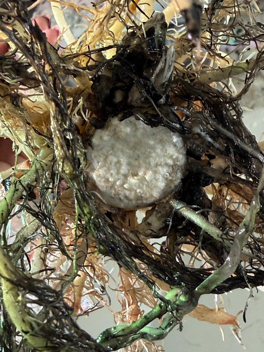 Remove anything dead or mushy, dip ot in alcohol and put it in water