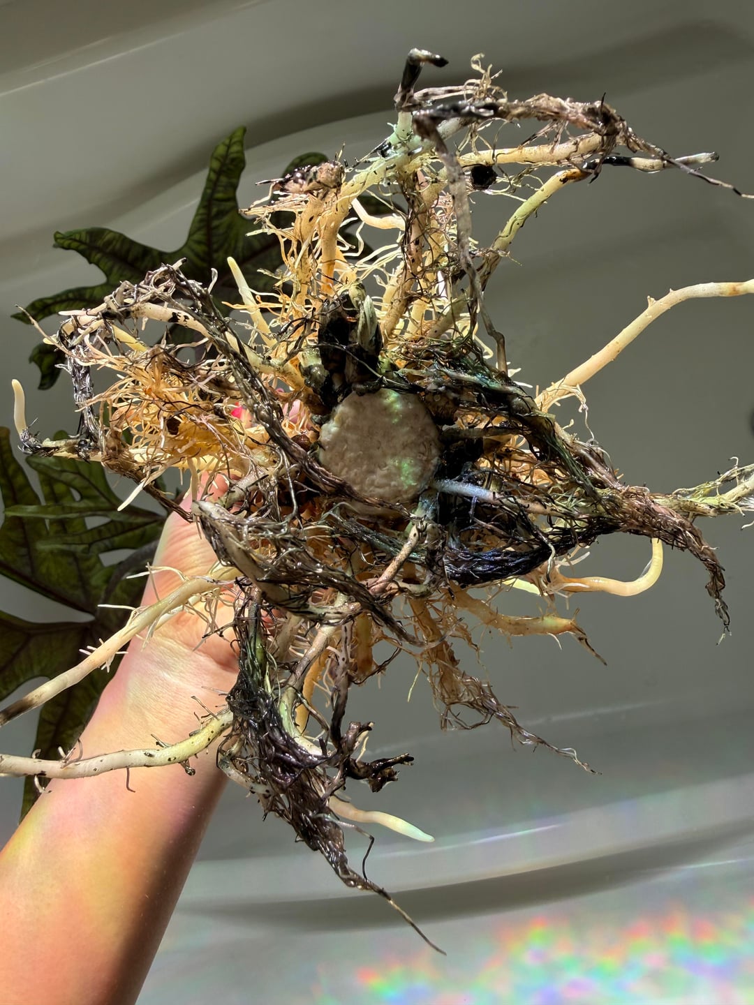 Helppppp! I smelled root rot and come to find this! Can I cut the corm giant or what can I do to try to save it? by New_Medicine9818 alocasia 2 Comments TropicalSkysPlants 1 day ago Remove anything dead or mushy, dip ot in alcohol and put it in water ThreeEyedLine 1 day ago Yes and yes