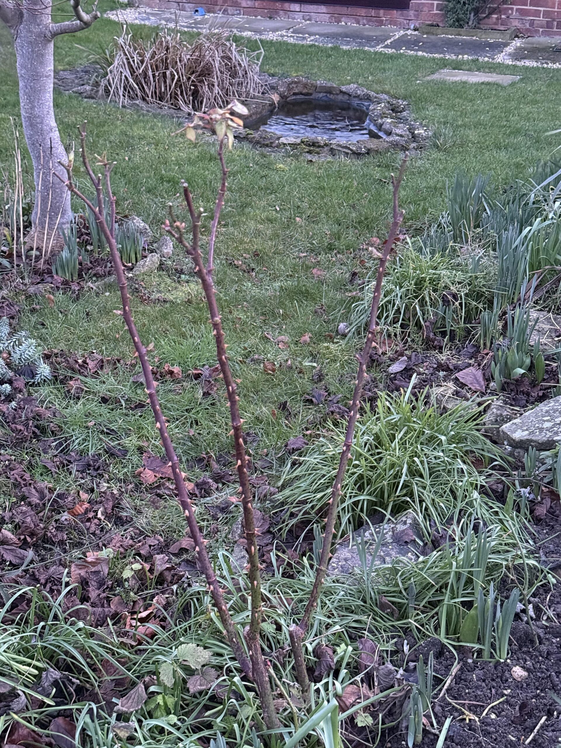 I have a few roses doing great but this one seem to stubbornly just want to stay as 3 tall straight stems, is there anything i can do to encourage side ways branches/shoots before it all starts coming back to life?