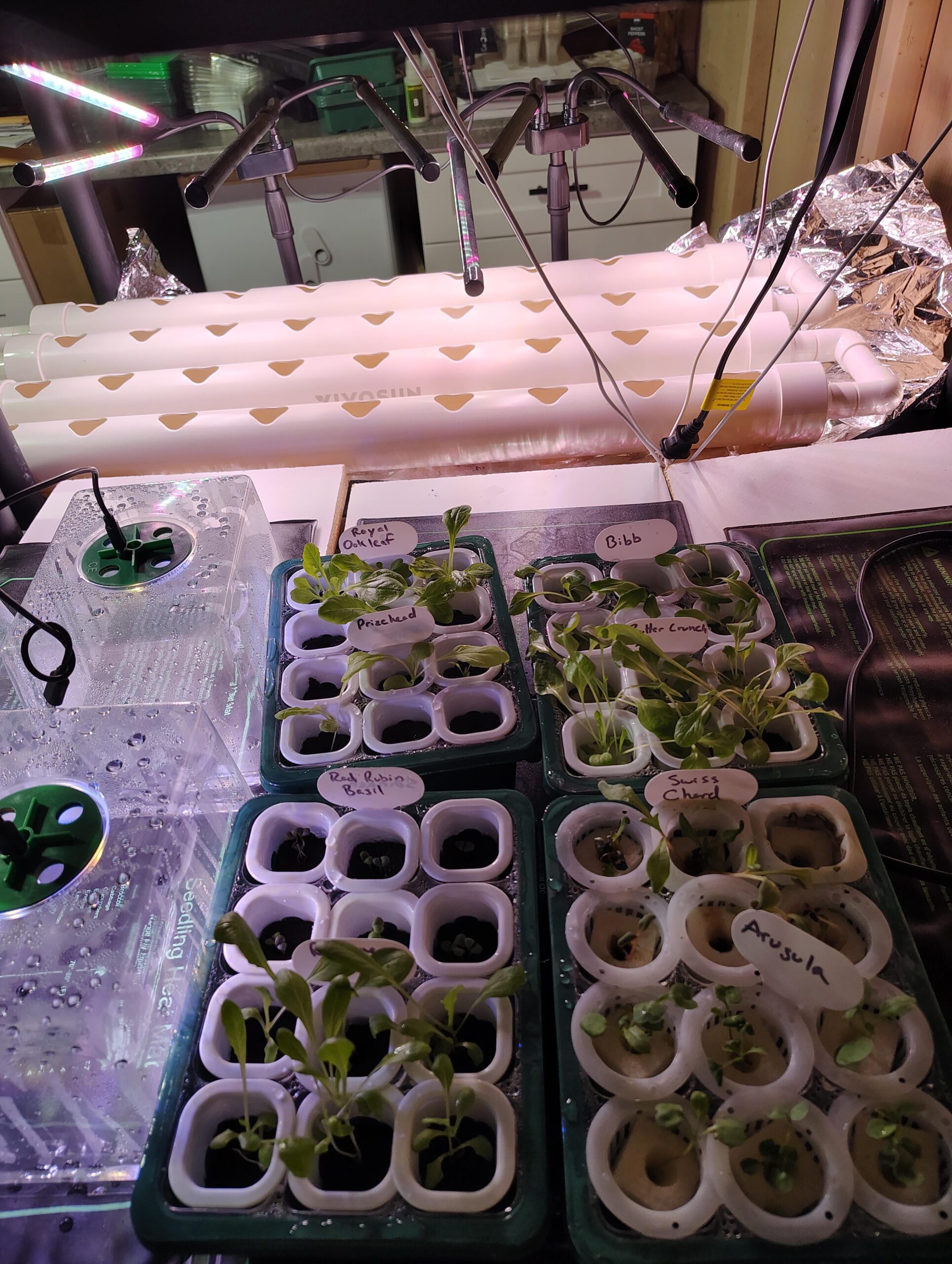 I decided to be bold and start growing my leafy greens on a fancy new rail system. I wanted it for Christmas. Ask and you shall receive. I feel like this is the gateway drug into the world of hydroponics. I have used the DWC systems from big names. They've only lasted a year or 2 for me. I'm about to transplant them and get it all going. 5 gallon bucket reservoir. Any helpful insight would be appreciated. I need to pick 36 off the healthiest. The red rubin basil was recently geminated since my spinach didn't sprout. I put 3 seeds in each pod. I'm hoping for a bountiful harvest!