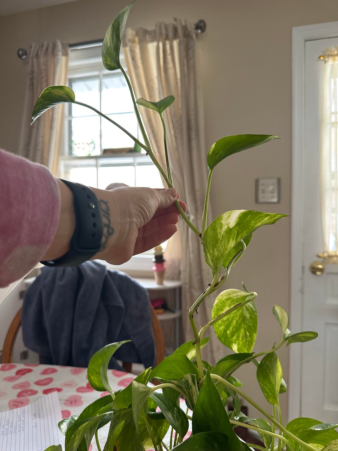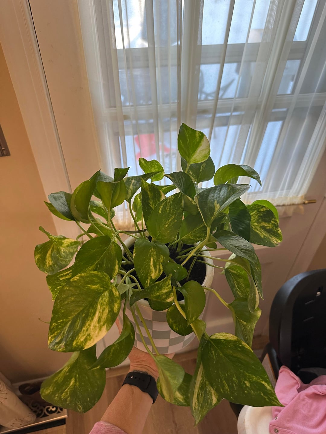 My MIL gifted me this plant a couple months ago, neglected it a tiny bit and ended up with the longest vine but I finally got around to repotting him today. I propagated the long vine into 4, placed it into the pot at 12,3,6 and 9. Kind of proud of the before and after but 🤞🏼 he takes to the repot!