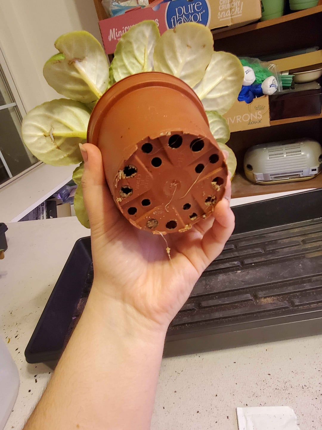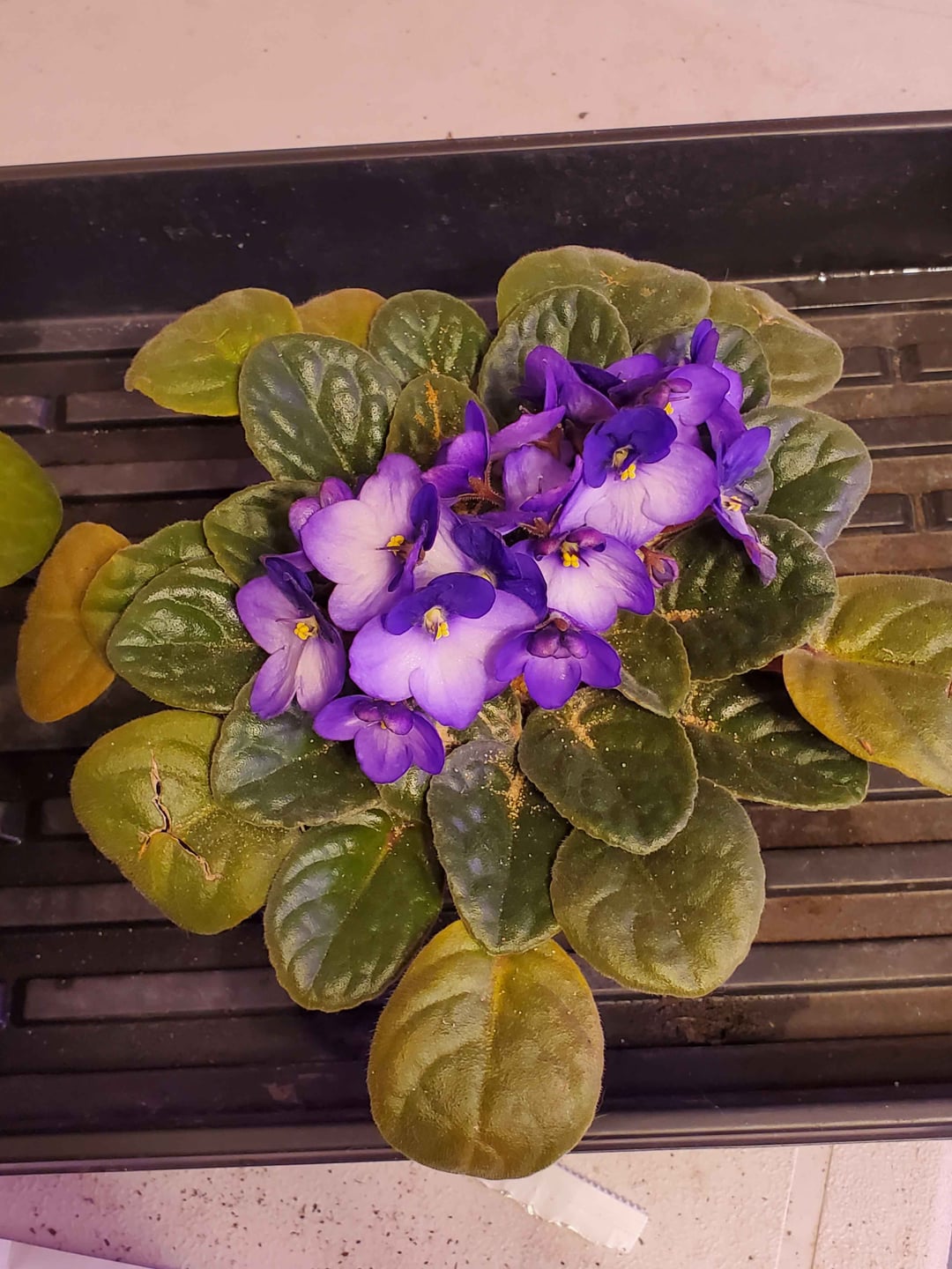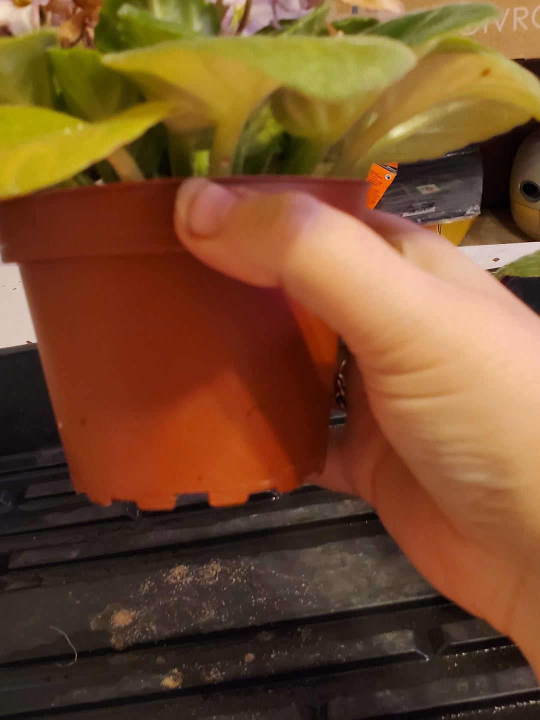 Hello! Got these violets several months ago, read about the watering habits, how they like to be slightly rootbound. First three pictures are of the purple flowering one, the rest are of the other one. I do have sand on top of soil to discourage gnats from laying eggs in soil, so if you see weird coloring of the soil that may be why. I water then around twice a week I've noticed if I go a week or more the leaves start drooping. Yeah I need to remove the spent flowers on the pink one, will be doing that this week. The item info I took a picture of says it's a 4in pot. The roots are basically the same in both. Also, I want to check I keep them under growlights for around 16 on 8 off. Should I do less, I've noticed the outer leaves changing color and wonder if I need to change lighting setup. Thanks for the input 🙂