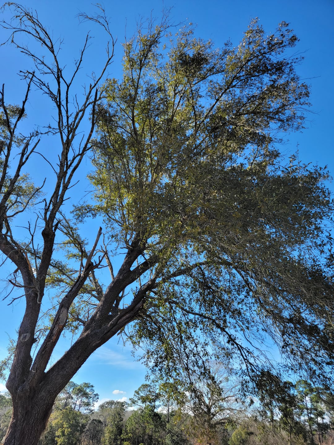 This tree is over half dead already. If there is nothing valuable for it to land on, remove at your leisure. If there is something valuable for it to land on, remove ASAP.