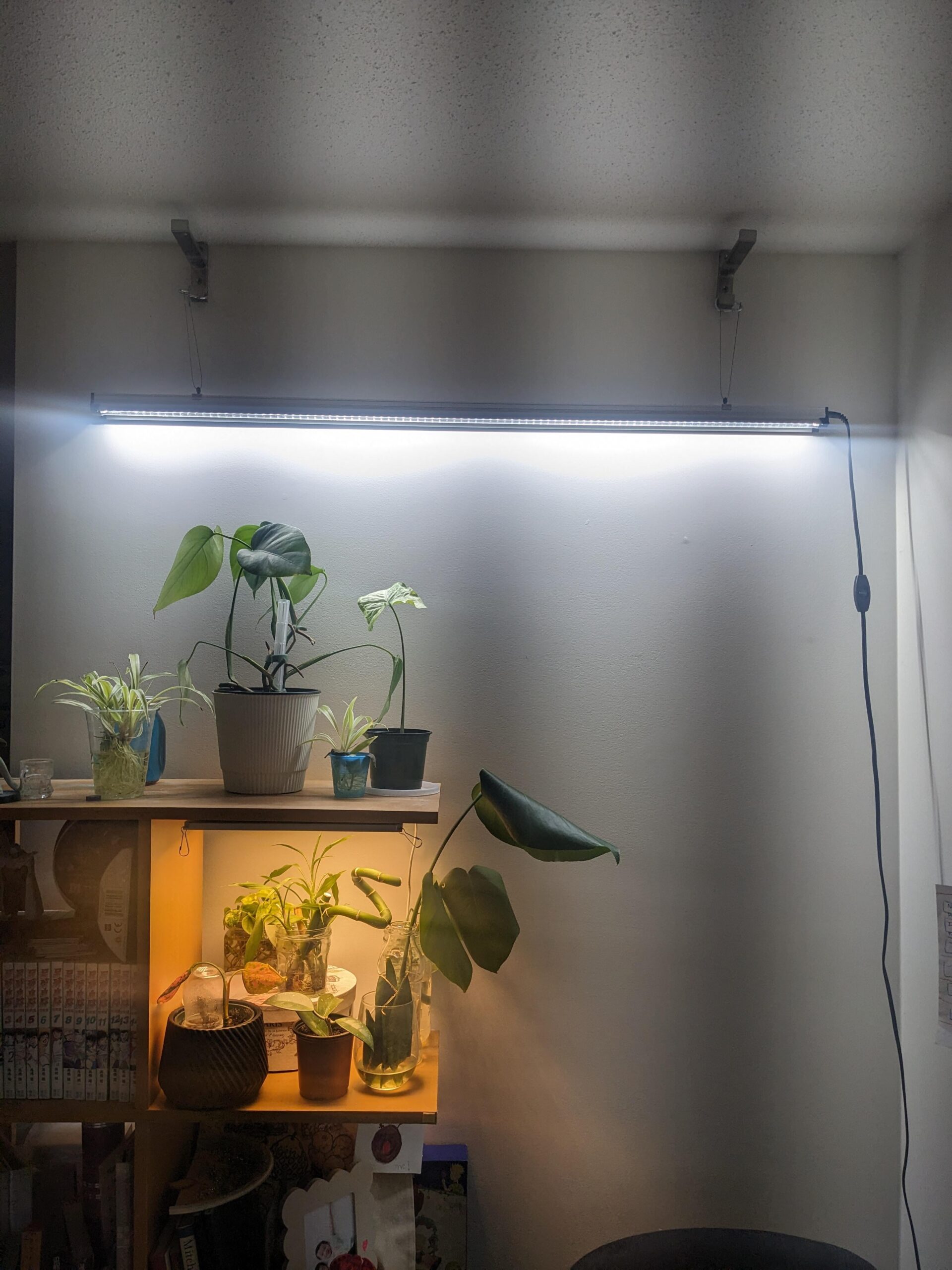 i don’t think the light is doing much for the plants. the light is being wasted on the wall instead of hitting the plants.