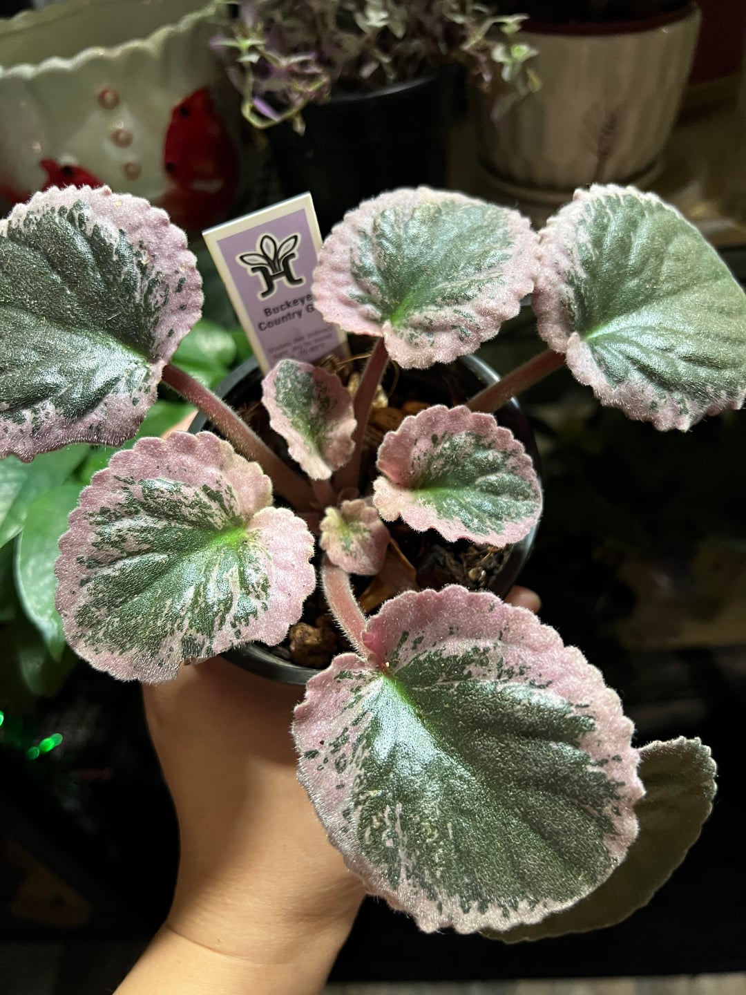 I’m a bit worried about this Buckeye Country Gal AV. The left leaf prop growing green leaves is from another different AV. The leaf on the right is from the mother plant in the second pic. Will it survive when the mother leaf eventually shrivels up? Also, I’m worried about the mother plant having too much pink variegation. The next tiny leaves it’s putting out barely has any green on it at all. I’m growing everything under grow lights. The grow lights used to be on 12 hours a day and I already decreased it to 8 hoping to encourage more green. But it’s not working.