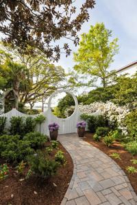 Several of the tour stops include “secret gardens” located in a thriving, younger neighborhood. Those gardens are accessed via shuttle: patrons will drive to the parking area across from Carolina Bay Retirement Center off Carolina Bay Drive, then take the shuttle to the secret garden locations. Along the way, riders will also pass two Honorable Mention gardens recognized for their unique beauty.