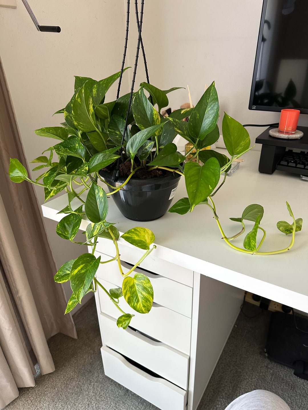 straight from the nursery, now hanging next to my window. I thought I was going crazy thinking did I receive her this light green? Had to compare the photos, she seems to be loving the light and has grown a heap in the small amount of time I’ve had her!