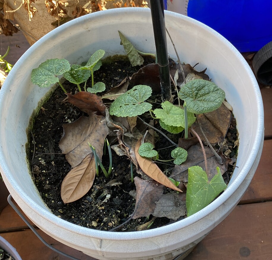 Hey, did you know there was this big blue wall back here? 😅The pot at the bottom has my daffodil and fritillaria bulbs in it.