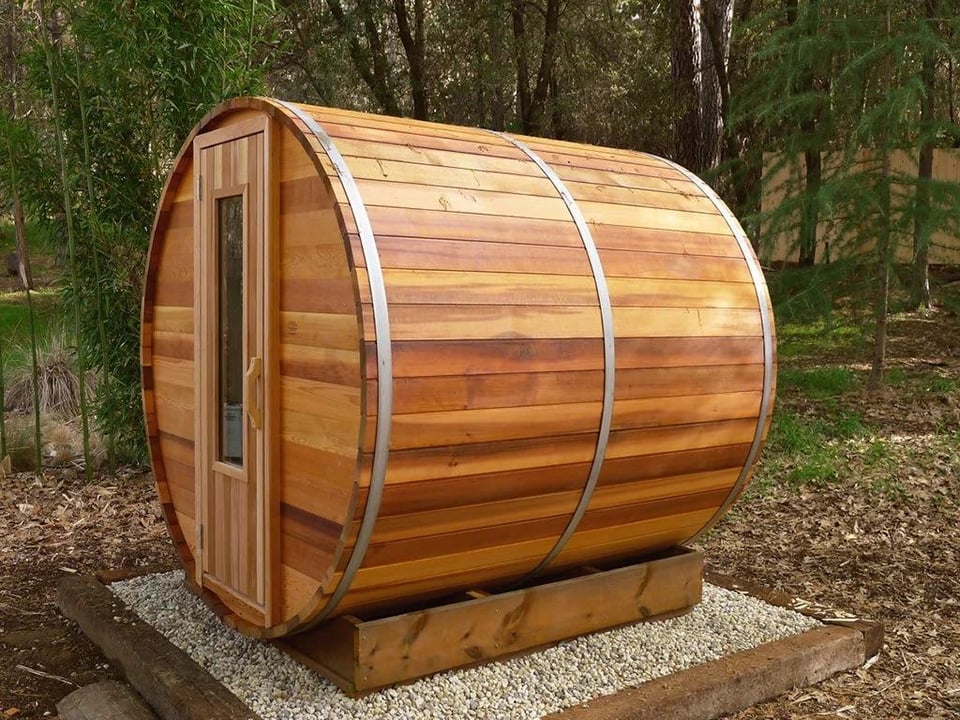 Is the answer just dig down a bit and put some drain rock? Photo of a barrel sauna just for reference