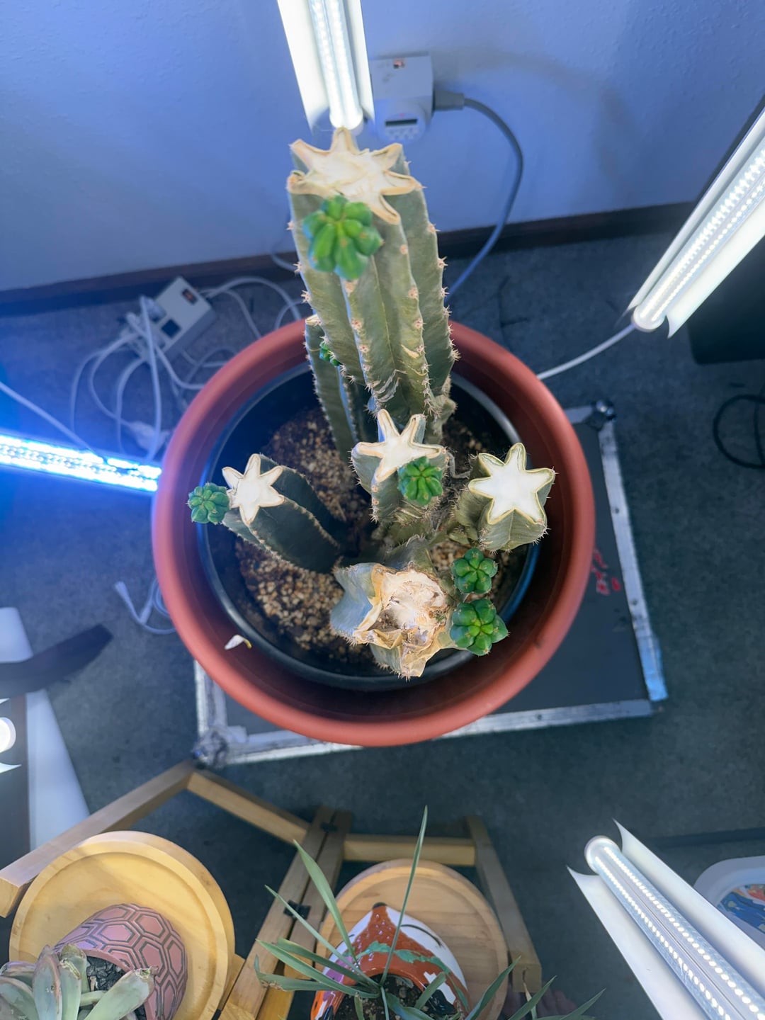 Thanks to yalls help 2-3 months ago, I chopped all the columns off my newly acquired etiolated San Pedro. To my surprise I’ve already got some nice pup growth!