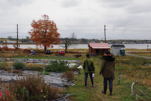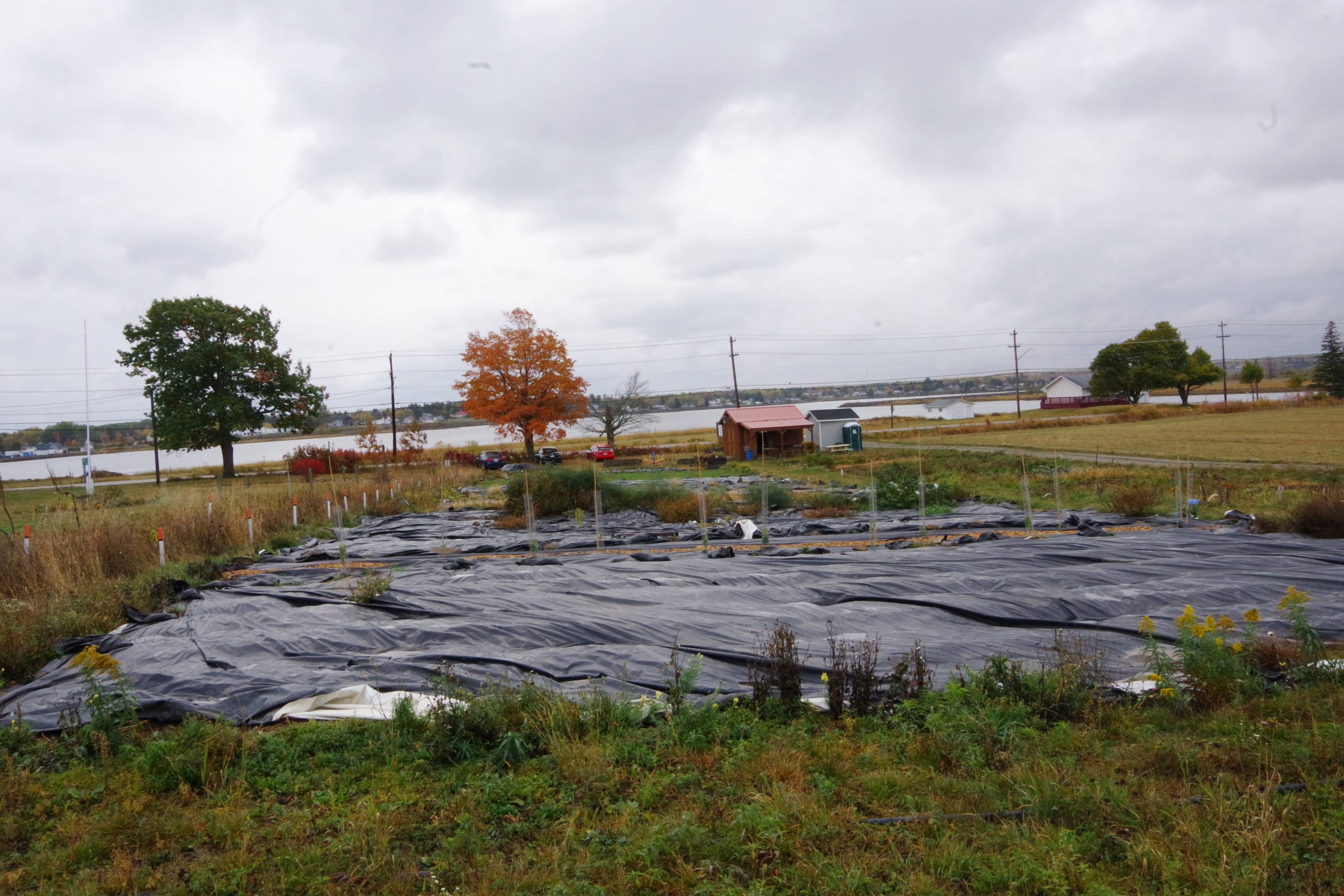 The Cocagne Community Garden overlooking the Cocagne River, October 2025. Photo by Mira Dietz Chiasson.