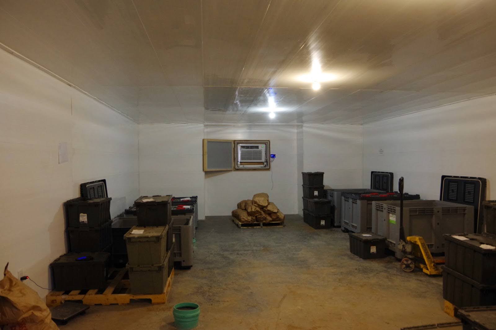 Inside the cellar, special bins that regulate humidity store potatoes and carrots. Photo by Mira Dietz Chiasson.