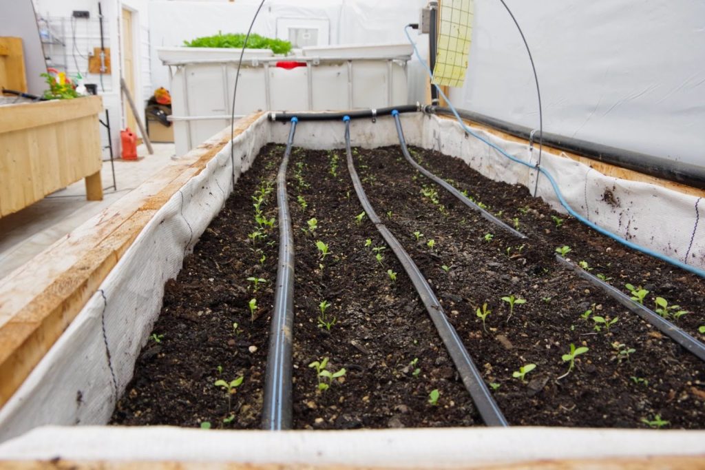 Seedlings growing in the walipini. Photo by Mira Dietz Chiasson.